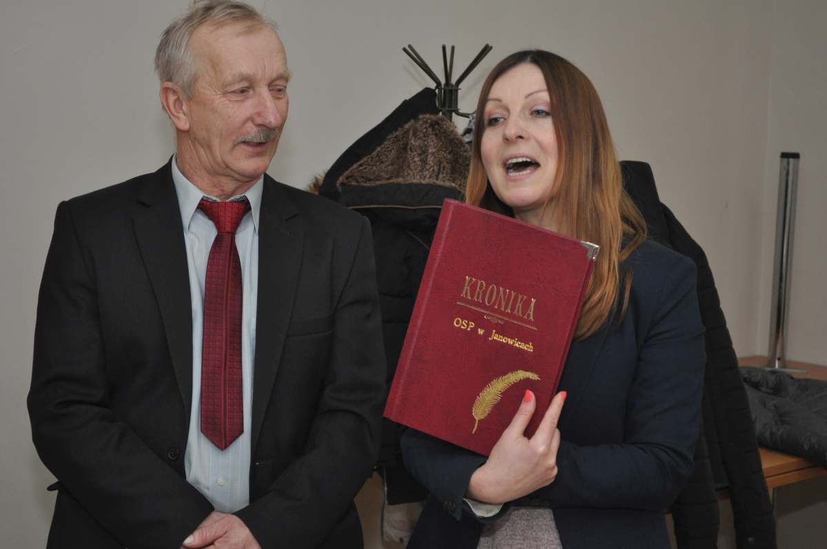 Gospodarz gminy dziękowała Panom, którzy tego dnia tak wdzięcznie służyły płci pięknej. – Z ogromną przyjemnością obserwuję jak w tej remizie tętni życie. Tu naprawdę się coś dzieje – podkreślała. Za pomocą swego podarunku – kronik, którą wręczyła radnemu Pilawskiemu, wójt zachęcała do dokumentowania niezapomnianych chwil, których sprawcami jest janowickie KGW i jednostka OSP.