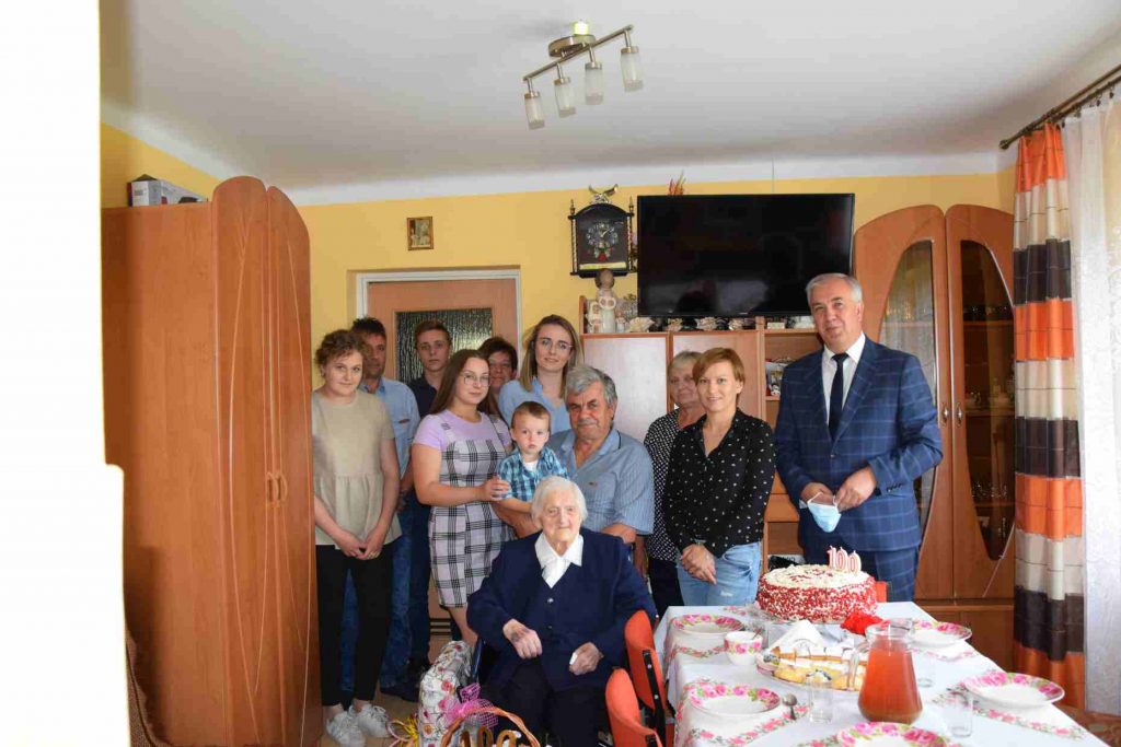 W czwartek 23 lipca 2020r. Wójt Gminy Gołcza Lesław Blacha oraz Kierownik USC Joanna Marczewska – Molenda z życzeniami, kwiatami i upominkiem odwiedzili Mieszkankę Gminy Gołcza, Panią Zofię Mentel. Okazja była niezwykła, ponieważ Pani Zofia w tym roku obchodziła swoje 100 urodziny. Podczas spotkania obecna była najbliższa rodzina dostojnej Jubilatki. Sto lat to piękny wiek, który osiągają nieliczni, dlatego nie zabrakło tortu, wzniesienia toastu i chwil wzruszenia, odśpiewano także „200 lat”.