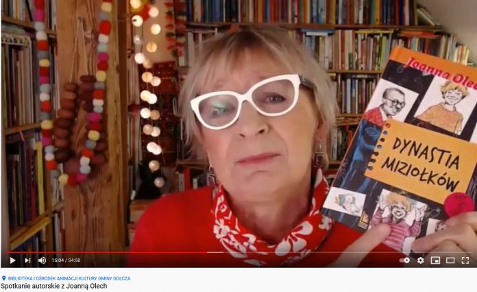 18 listopada 2020 r. Biblioteka i Ośrodek Animacji Kultury Gminy Gołcza przeprowadziła spotkanie online z pisarką dla dzieci i młodzieży Joanną Olech. W spotkaniu zorganizowanym w ramach programu Dyskusyjne Kluby Książki 2020 wzięły udział klasy V, VI i VII oraz członkowie DKK „Młodzież kontra książki”.