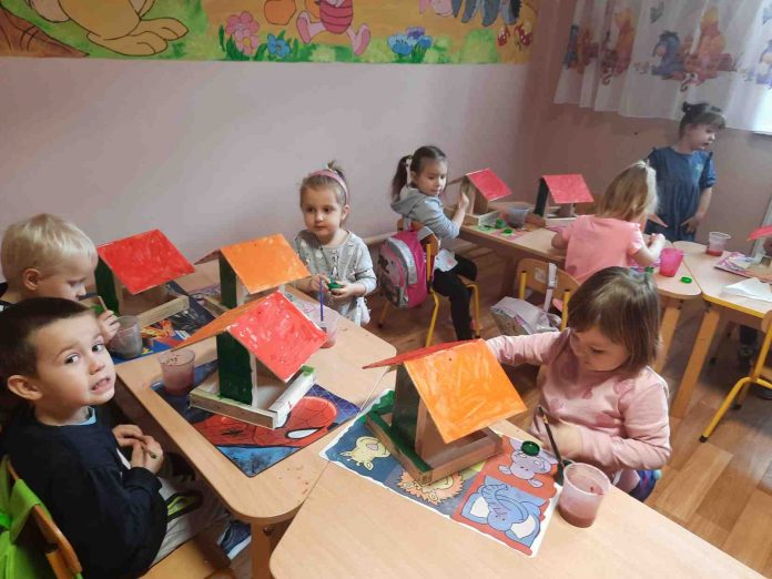 Zadaniem przedszkolaków było pokolorowanie i ozdobienie ptasich stołówek. Dzieci poradziły sobie z tym zadaniem doskonale. Teraz piękne, kolorowe karmniki trafią do ogrodów i na pewno nie zabraknie w nich ptasich przysmaków przez całą zimę.