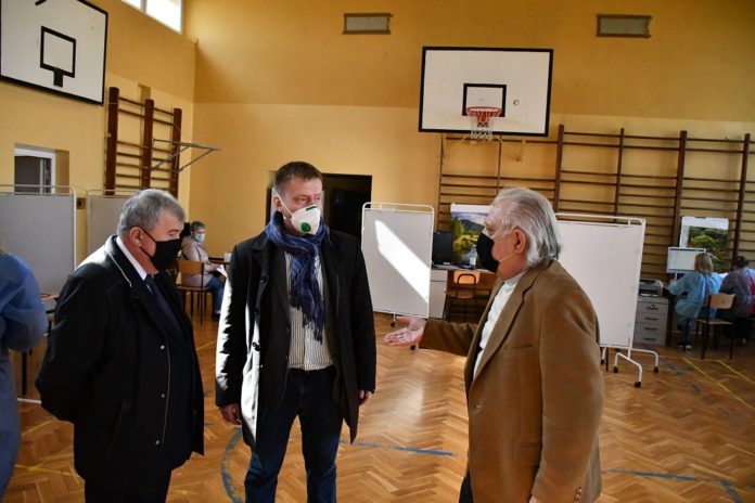 W środę 28 kwietnia Starosta Miechowski Jacek Kobyłka wraz z dyrektorem Szpitala św. Anny Mirosławem Drożdżem odwiedzili szpitalny punkt szczepień zorganizowany w sali gimnastycznej Liceum Ogólnokształcącego w Miechowie, który przypomnijmy decyzją władz Powiatu Miechowskiego, dyrekcji Szpitala i w porozumieniu z dyrekcją szkoły, ruszył w tym miejscu 15 marca br. W sali zorganizowanych jest 7 punktów szczepień. Obiekt sprzyja tym zabiegom, bowiem jego usytuowanie, dostępność parkingu, jak i osobne wejście oraz wyjście, sprzyja zachowaniu norm sanitarnych, a tym samym organizacji szczepień przeciw „Covid-19”. Co prawda zdarzają się sporadycznie sytuacje nerwowe, ale wynikają one głównie z błędów ogólnopolskiego systemu informatycznego lub nieotrzymania przez punkt odpowiedniej (przewidzianej na dany dzień) liczby szczepionek.