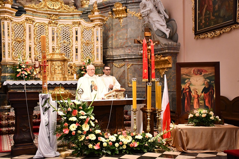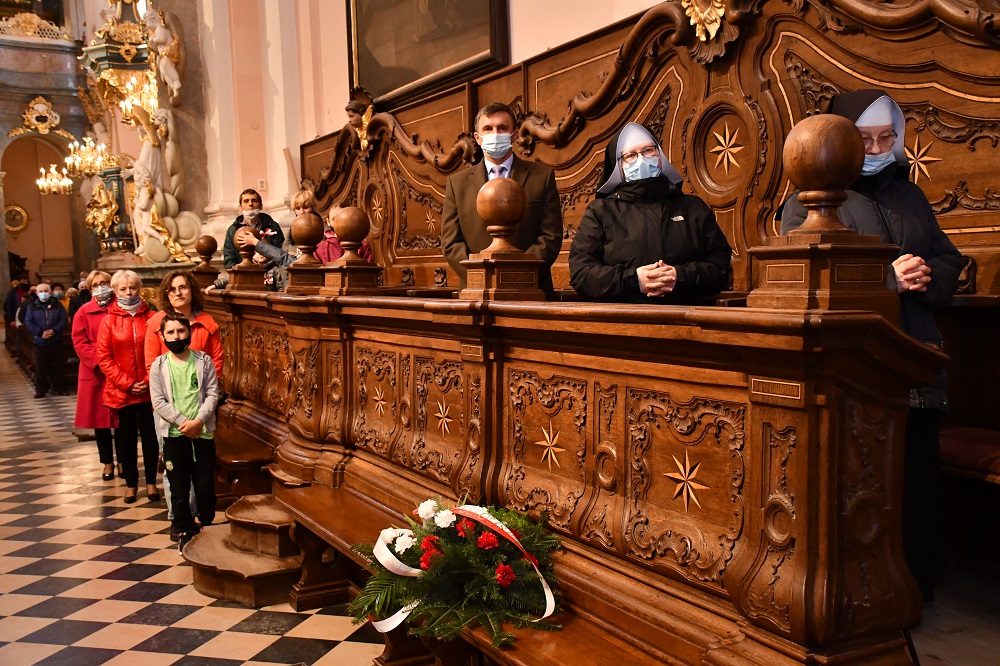Powiatowo-miejskie miechowskie obchody 230. rocznicy uchwalenia Konstytucji 3 Maja, podobnie jak poprzednie zeszłoroczne, z powodu pandemii miały charakter skromny, ale też uroczysty. Rozpoczęły je Msza św., podczas której ks. proboszcz Franciszek Siarek z diakonem Wojciechem Rutczyńskim zawierzyli na nowo naszą Ojczyznę z racji zbiegającej się ze Świętem Konstytucji uroczystością Najświętszej Marii Panny Królowej Polski. Modlili się, aby Polska cieszyła się wolnością i dobrobytem, a w narodzie panował duch służby i solidarności.