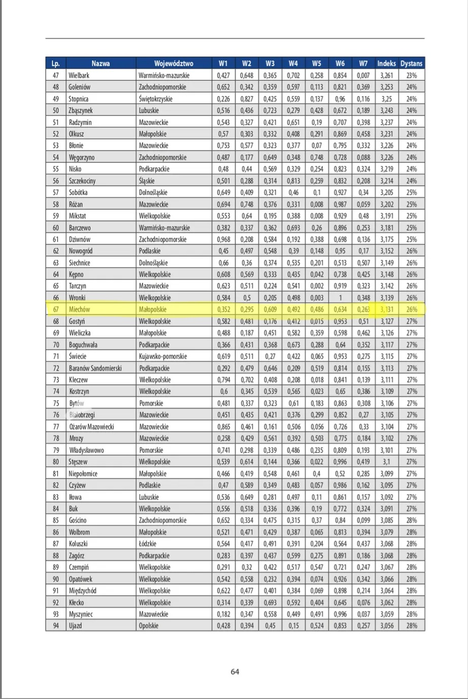 W opracowaniu wzięto pod uwagę siedem wskaźników: