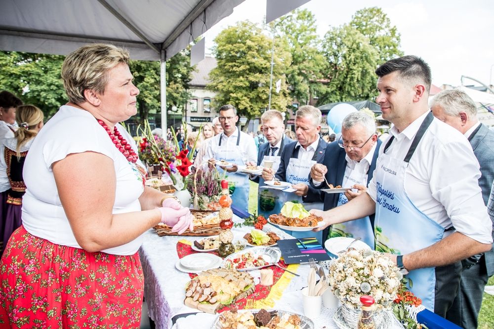 Uczestnicy Małopolskiego Festiwalu Smaku w  Miechowie mogli skosztować podpłomyków, gołąbków, żeberek, kurczaka po miechowsku czy miechowskiej zupy z serwatki – a to tylko niektóre z przysmaków jakie gościły na miechowskim rynku!