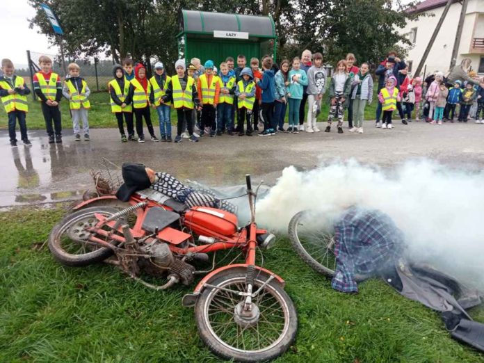 Uczniowie klasy II Szkoły Podstawowej w Antolce pod opieką  wychowawczyni  E. Szopa  uczestniczyli w teoretycznych i praktycznych zajęciach ze strażakami OSP –  Łazy. Zajęcia odbyły się w plenerze.  Strażacy pod kierownictwem pana Krystiana Greli przeprowadzili pokaz gaszenia pożaru palącej się słomy. Następnie przedstawili sytuację rowerzystów poszkodowanych w wypadku oraz udzielanie im pomocy. Dużą atrakcją było zdejmowanie kota, który znalazł się na drzewie.