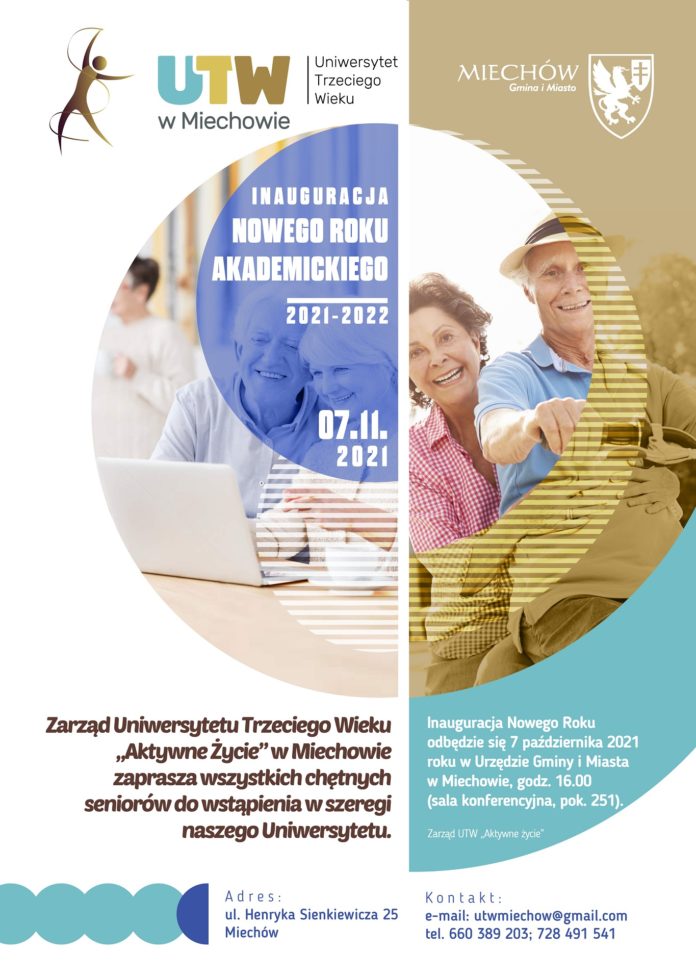 Inauguracja nowego roku akademickiego odbędzie się w dniu 7 października 2021 roku o godz. 16.00 w Urzędzie Gminy i Miasta w Miechowie (sala konferencyjna).