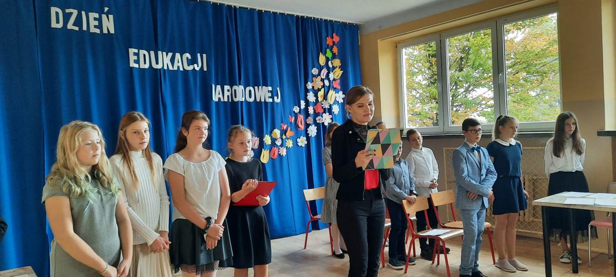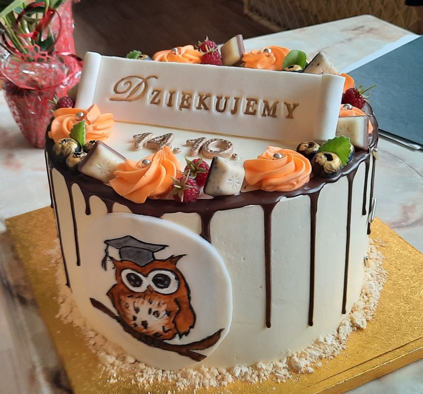 Po występie uczniów, życzenia złożyła Przewodnicząca Rady Rodziców Agnieszka Drop, przekazując słodki upominek w postaci przepięknego tortu.