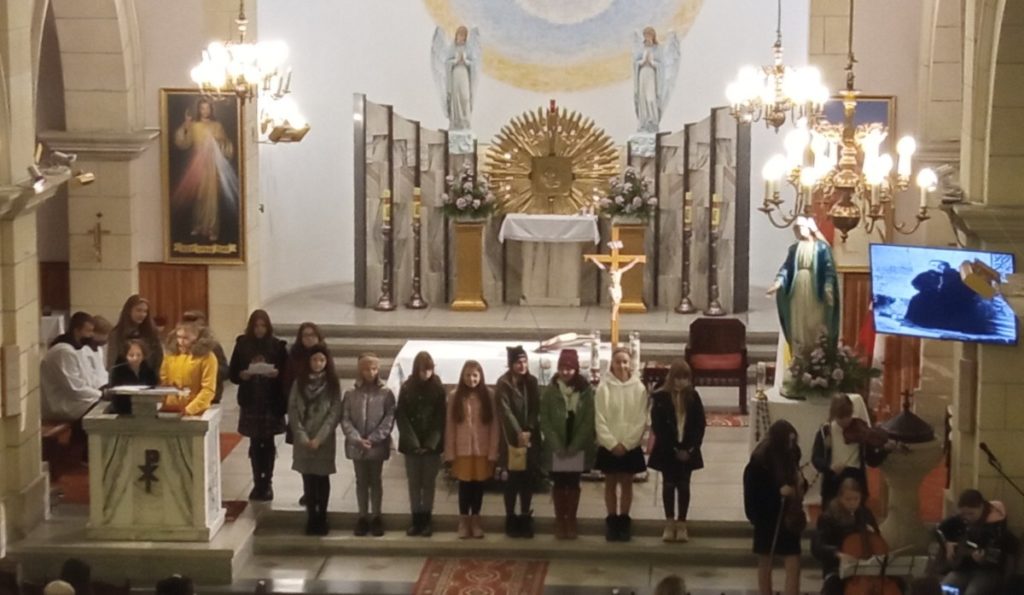 Występ dzieci oraz Chóru Parafialnego z wielkim wzruszeniem oglądali parafianie zgromadzeni w niedzielę 17 października w Kościele Parafialnym w Antolce, a 18 października uczniowie szkoły w podczas akademii .