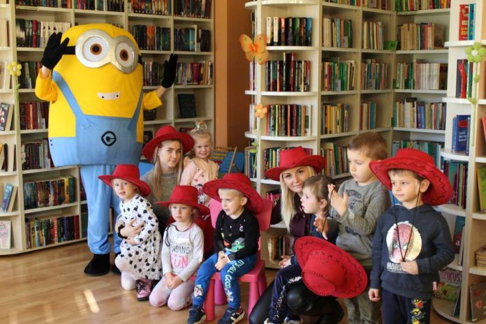 W tym roku Dzień Postaci z bajek BiOAK Gołcza obchodził wspólnie z grupą przedszkolną „Biedroneczki”. Z tej okazji w bibliotece na dzieciaki czekał specjalny gość, który całkiem niedawno dołączył do panteonu wyjątkowych postaci bajkowych. MINIONEK, bo o nim mowa przygotował dla uczestników szereg zadań i zagadek, by uczynić ten dzień jeszcze bardziej wyjątkowym. Nie zabrakło zabaw z balonem, zagadek książkowych, wyzwań sprawnościowych oraz tanecznych.