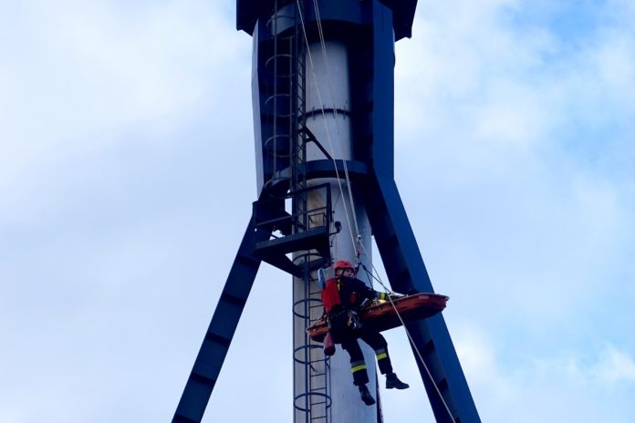 • ewakuacja poszkodowanego z platformy komina przy wykorzystaniu technik linowych,