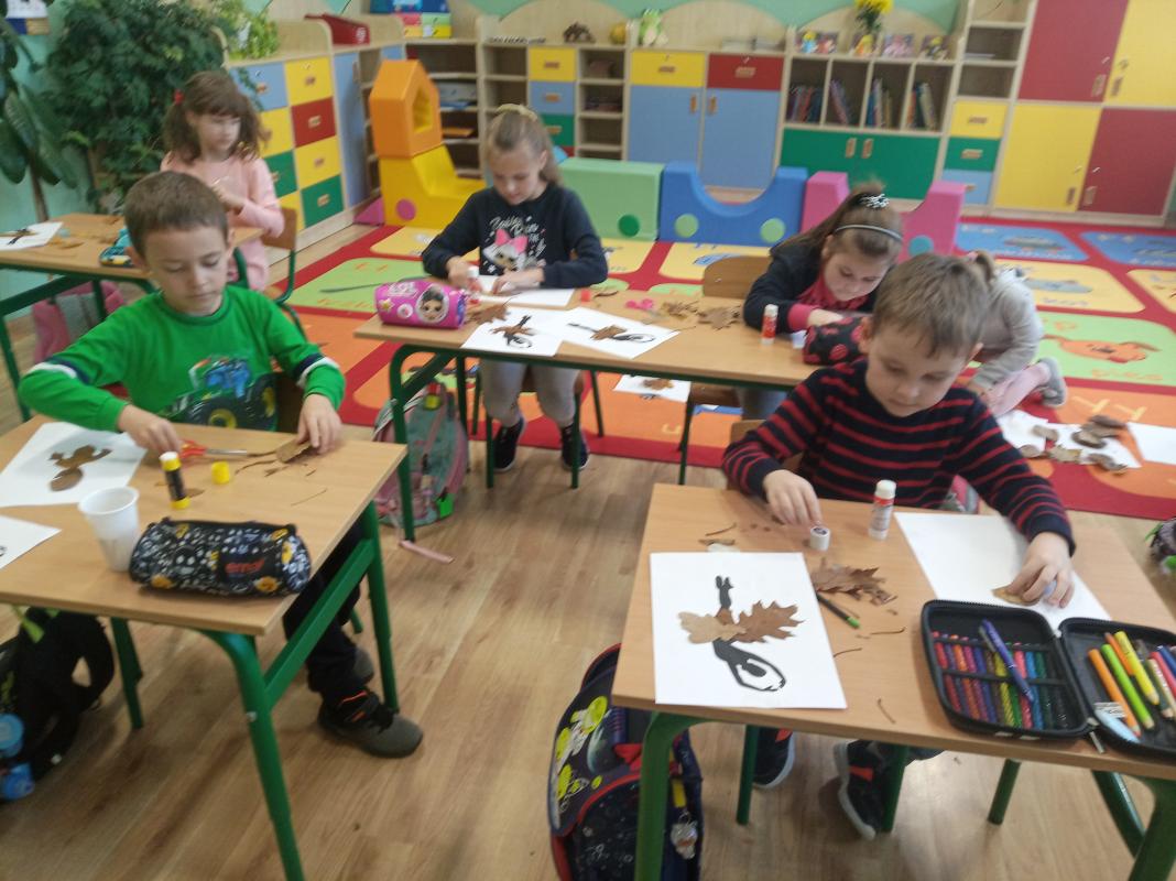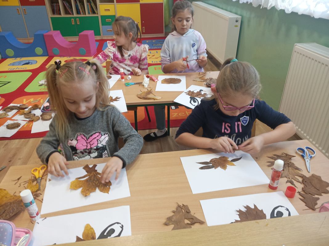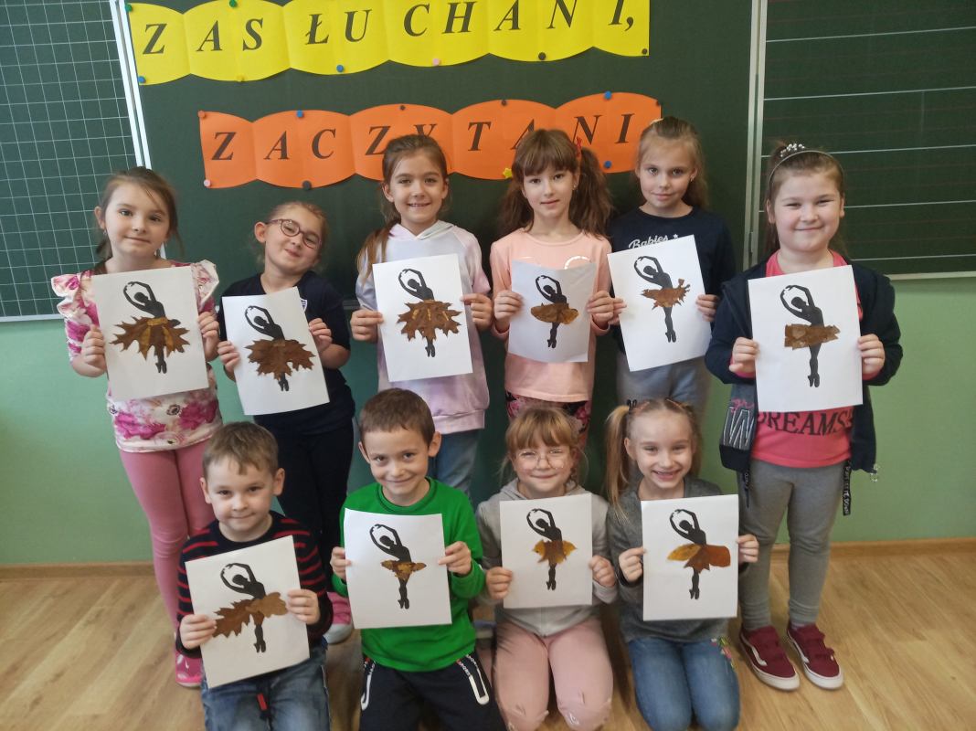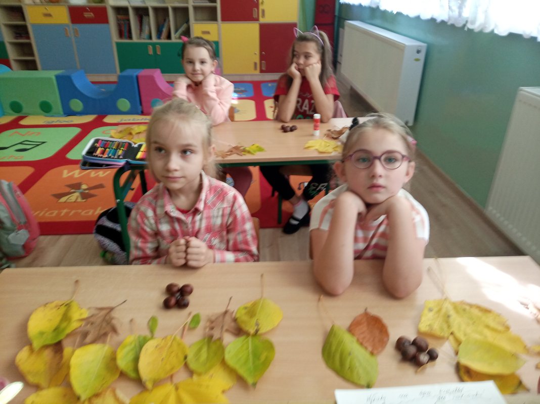 Wykonali jesienne stworki z liści, jesienne baletnice oraz malowali kasztanowe buźki, wyrażające różne emocje, jak np. radość, smutek, tęsknotę, zadowolenie, przygnębienie, czyli uczucia, które towarzyszą nam wszystkim, zarówno małym, jak i dużym. Kasztanowe buźki są teraz z pierwszakami podczas codziennych zajęć, przypominając czytelnicze emocje. Zajęcia aktywizujące wyobraźnię i budujące wrażliwość na piękno natury oraz rozwijające zainteresowania czytelnicze będą kontynuowane, bo przecież „czym Jaś, Janina za młodu nasiąknie”…