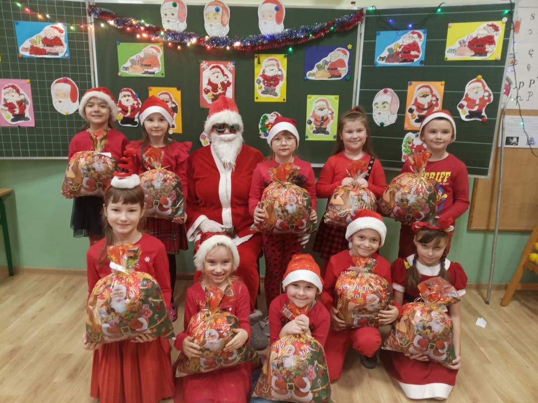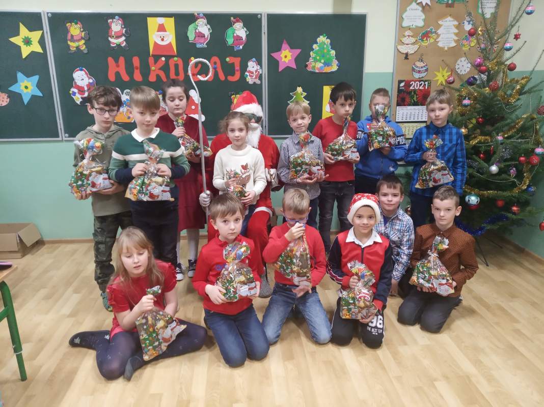 Tak również było i w Szkole Podstawowej oraz w Punkcie i Oddziale Przedszkolnym w Antolce. Od rana dało się zauważyć oczekiwanie, wyglądanie i poszukiwanie Świętego przez dzieciaki ubrane w stroje w czerwonych kolorach. Aż wreszcie udało się go wypatrzyć, zawitał do szkoły Święty Mikołaj, oczywiście z workiem pełnym prezentów, którymi obdarowywał wszystkich uczniów. Był to czas niezwykle miły i pełen radości, bo kto nie lubi dawać i otrzymywać prezentów?