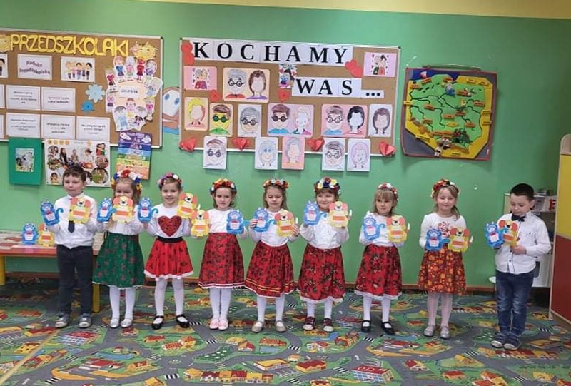 Świat się zmienia, ale nie zmienia się jedno – miłość babci i dziadka, za którą dzieci chciały serdecznie podziękować. Jak co roku seniorzy mogli spodziewać się pięknie wyrecytowanych wierszyków, zaśpiewanych piosenek oraz wykonanych przez maluchów prezentów. Doświadczenia te pozwoliły jeszcze bardziej docenić jak wielkim skarbem jest babcia i dziadek. Obie grupy zaprezentowały się bez udziału publiczności.