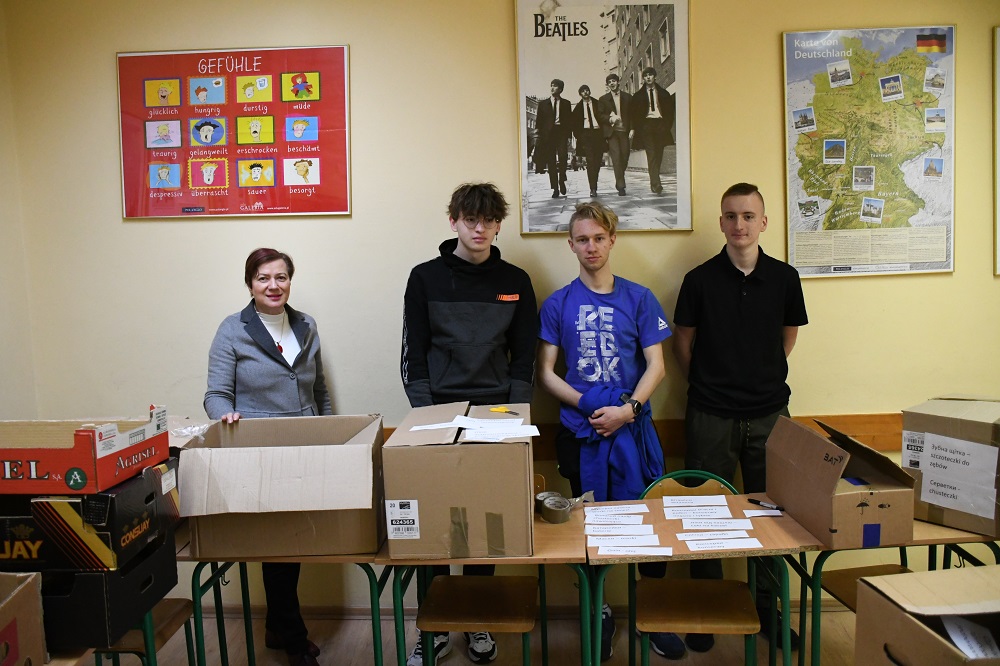 W akcję pomocy aktywnie włączyła się młodzież z miechowskich szkół średnich. Samorząd Szkolny Zespołu Szkół Nr 1 przy wsparciu dyrekcji i nauczycieli, na poziomie klas zorganizował zbiórkę produktów, która w piątkowe południe przetransportowana została do PMP. Lista zgromadzonych produktów, które wypełniły samochód transportowy, jest długa. W zbiórkę zaangażowani byli też ukraińscy uczniowie „Ekonomika” mieszkający od kilku lat w naszym powiecie. Jeden z nich tuż przed wybuchem wojny był w odwiedzinach w rodzinnym Żytomierzu. Jak podkreśla dyr. Marzena Samborska, jest to trzecioklasista, jeden z lepszych i lubianych przez rówieśników uczniów szkoły o zdolnościach matematycznych, do której uczęszcza od 1 klasy. Uczniowie pochodzenia ukraińskiego zostali objęci szkolną pomocą psychologiczno-pedagogiczną.