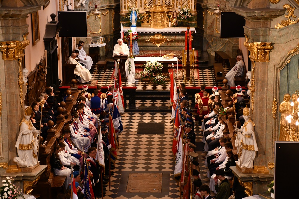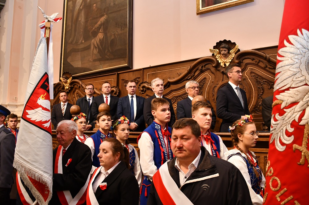 Uroczystości rozpoczęła Msza św. w Bazylice Grobu Bożego. W intencji Ojczyzny, w nawiązaniu do towarzyszącego obchodom Święta Najświętszej Marii Panny Królowej Polski, modlił się ks. proboszcz Franciszek Siarek z ks. Wincentym Pytlikiem, Kanonikiem Gremialnym Kapituły Katedralnej Pelplińskiej, Komandorem Zakonu Rycerskiego Grobu Bożego w Jerozolimie. Śpiewem i grą liturgię wzbogacili – Chór Parafialny Bazyliki oraz Orkiestra Dęta „Sygnał”.