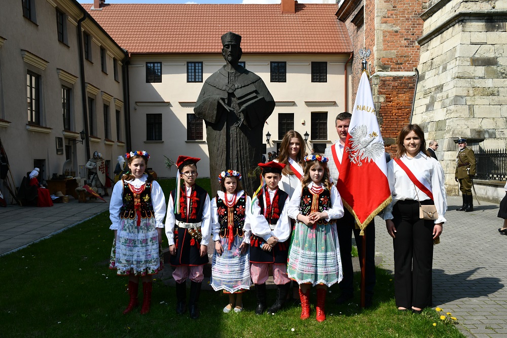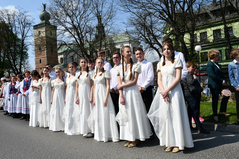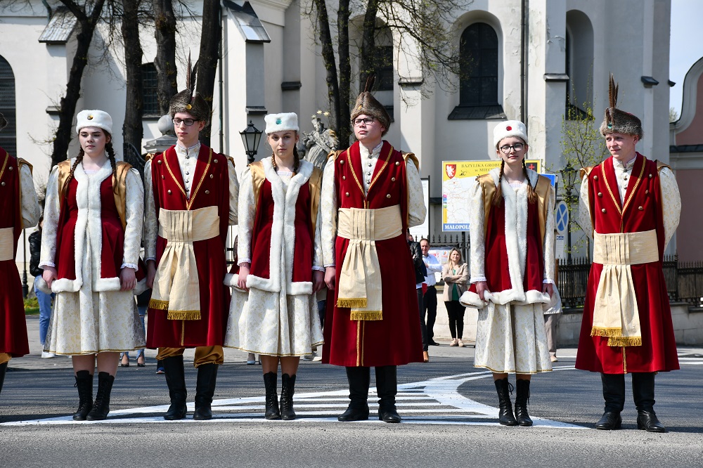 Po dwóch latach pandemii powiatowo-miejskie obchody uchwalenia Konstytucji 3 Maja mogły mieć w końcu pełny wymiar. 231. rocznica tego historycznego wydarzenia w Miechowie została uczczona niezwykle barwnie i uroczyście. Ceremoniał na Rynku po raz pierwszy uświetnił polonez w wykonaniu Zespołu Tańca „Miechowianie” z Zespołu Szkół Nr 1. Dopisały – pogoda, frekwencja wśród przybyłych gości, pocztów sztandarowych oraz widzów podziwiających obchody i towarzysząca temu wszystkiemu atmosfera. Dopełnieniem uroczystości była znakomita oprawa artystyczna w wykonaniu Miechowskiej Młodzieżowej Orkiestry Symfonicznej PSM oraz Studia Wokalnego Katarzyny Kornaś z CKiS wraz z Amelią Gajda.