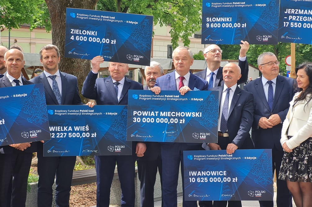 Powiat Miechowski otrzymał 30 mln zł z II naboru do Programu Inwestycji Strategicznych Polski Ład dla Małopolski. To kolejny milowy krok w stronę organizacji strefy gospodarczej. Pieniądze te przeznaczone będą na wykonanie infrastruktury w Parku Technologicznym w Książu Wielkim Promesę z rąk Ministra Infrastruktury Andrzeja Adamczyka w poniedziałek 30 maja w Krzeszowicach odebrali Starosta Miechowski Jacek Kobyłka z Przewodniczącym Rady Powiatu Krzysztofem Świerczkiem.