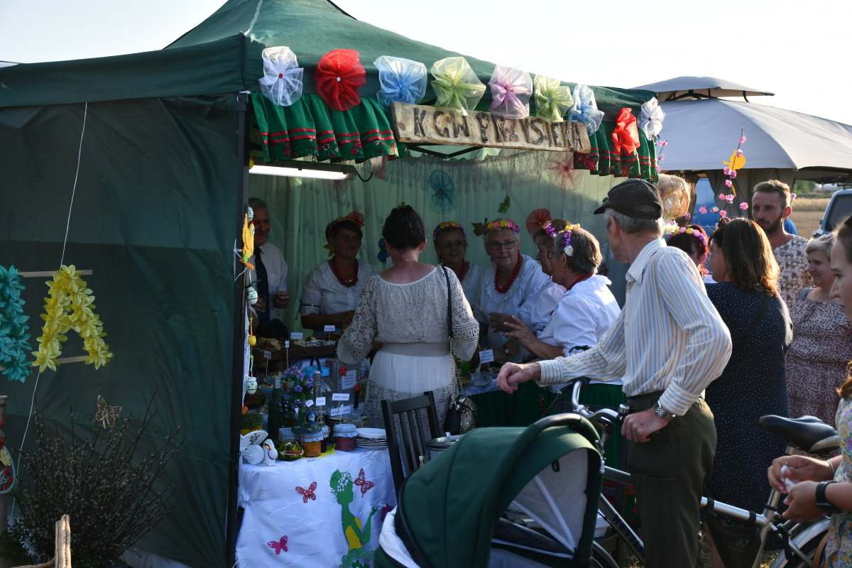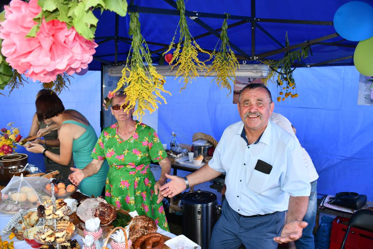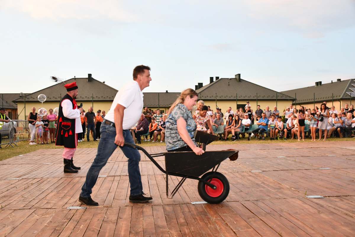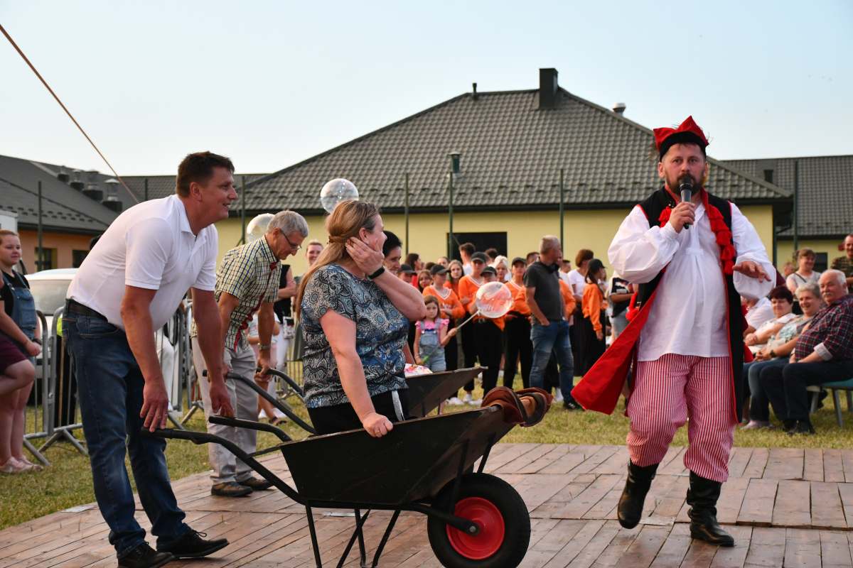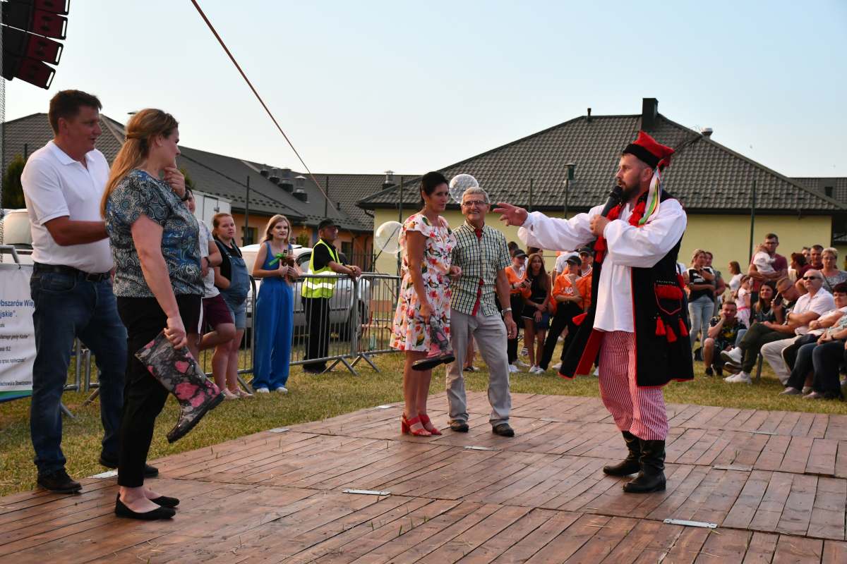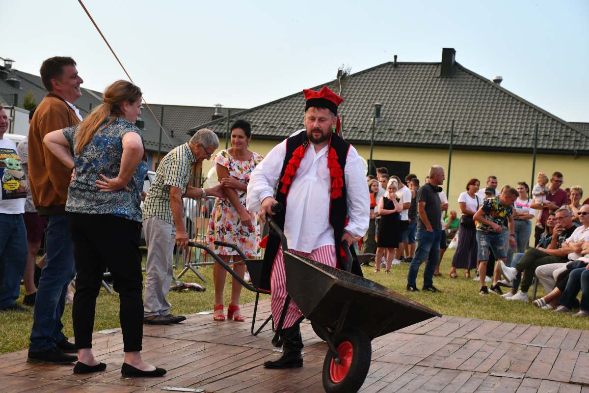Imprezę wypełnił folklor świętokrzyski i góralski. Koła Gospodyń serwowały lokalne specjały. Były atrakcje dla dzieci oraz strefa gastronomiczna. Do zabawy żywiołowo i z humorem zachęcał Wodzirej Tomasz Kościelniak, który przeprowadził m.in. konkurs powożenia taczkami, rzut gumiakiem do celu, szukanie jaj w stogu siana. Za jego sprawą na deskach zatańczono „Belgijkę”. Sam również, na zmianę z Zespołem Impress, prowadził zabawę taneczną.