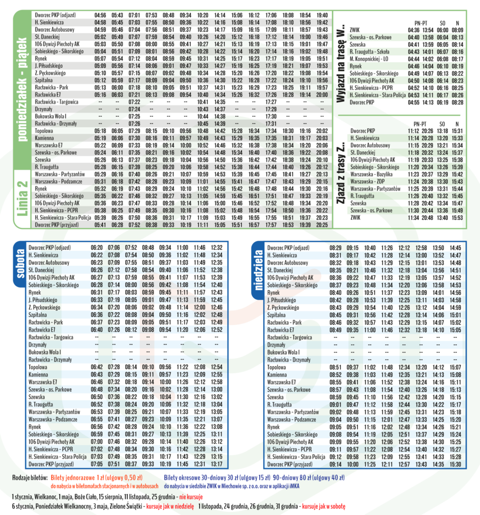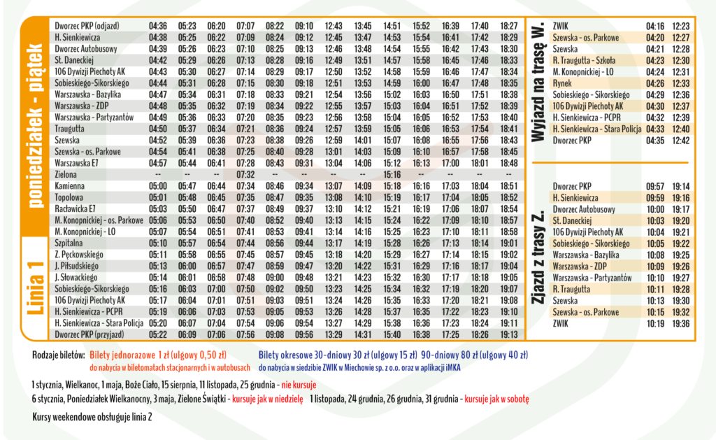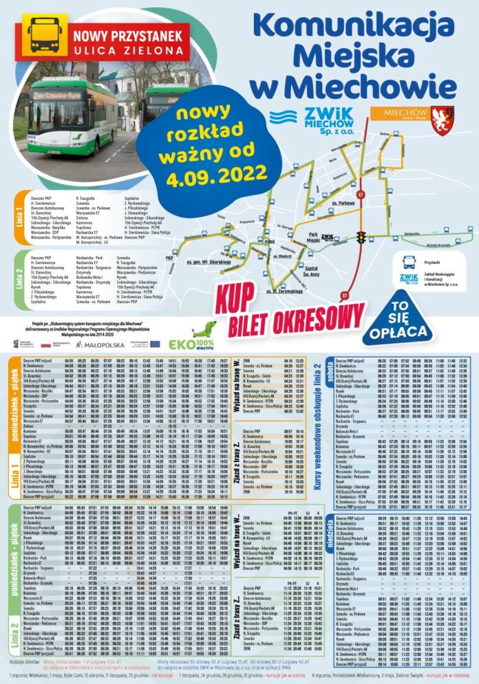 WiadomościMiechów Nowy rozkład jazdy autobusów miejskich w Miechowie Przez Krzysztof Capiga - 3 września 2022 0 2559 FacebookTwitterPinterest Od 4 września w Miechowie obowiązuje nowy rozkład jazdy autobusów miejskich. Szczegóły na plakatach.