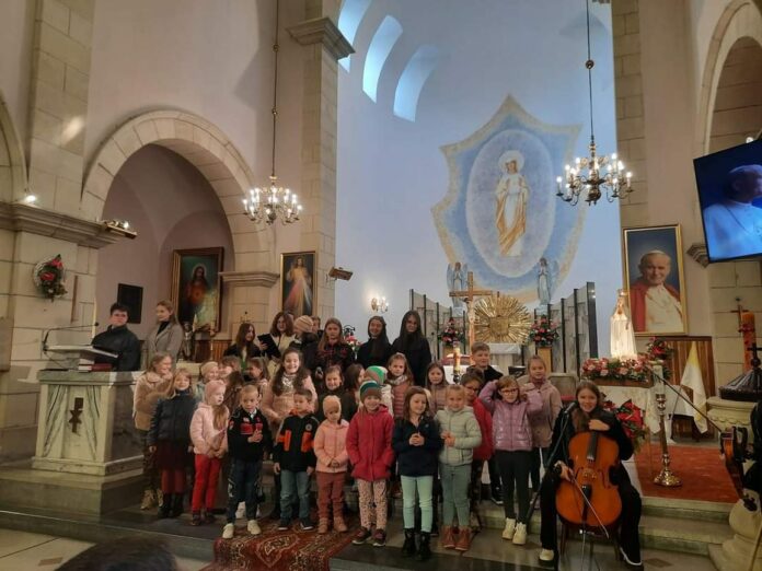 Dużą atrakcją występu był wspólny taniec i śpiew piosenki „Taki mały, taki duży” prowadzony przez Scholę Parafialną w Antolce. Wzięło w nim udział ok. 40 uczniów z kl. 0 – III, którzy tłumnie przybyli na Mszę Świętą 16.10.2022 do tutejszego kościoła. Nad przebiegiem całej uroczystości czuwała katechetka Anna Kowal.