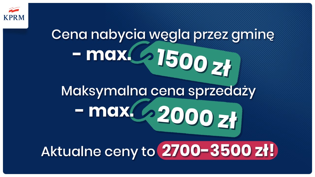 - Przewidywana cena zakupu 1 tony węgla przez Gminę 1500 zł brutto;