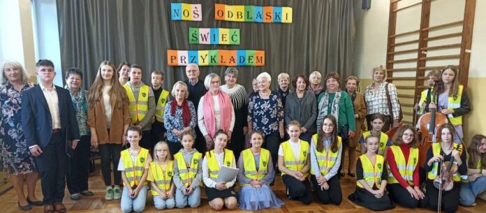 Podczas tej wizyty uczniowie zwrócili się także do emerytów z apelem o noszenie elementów odblaskowych. Jest to szczególnie ważne w okresie jesienno – zimowym, kiedy szybko zapada zmrok. Pod koniec spotkania obdarowano wszystkich gości odblaskowymi zawieszkami oraz odbył się wspólny poczęstunek.