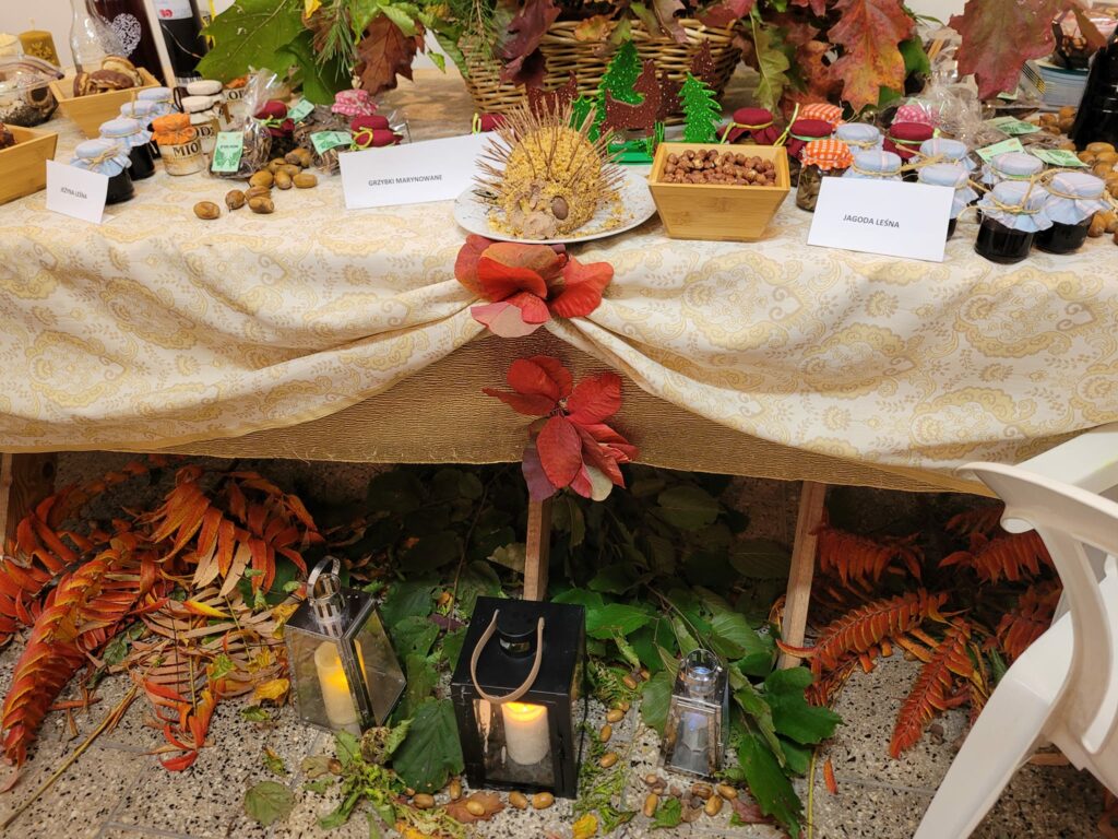 Poczęstunek w postaci bigosu myśliwskiego, gulaszu z dziczyzny, zupy grzybowej, grzybów marynowanych, ciast i babeczek z owocami leśnymi oraz wielu innych smakołyków został w całości przygotowany przez Panie z KGW w Przysiece, promując żywność pochodzenia leśnego. Dziękujemy wszystkim za obecność i zapraszamy na kolejne spotkania z KGW.