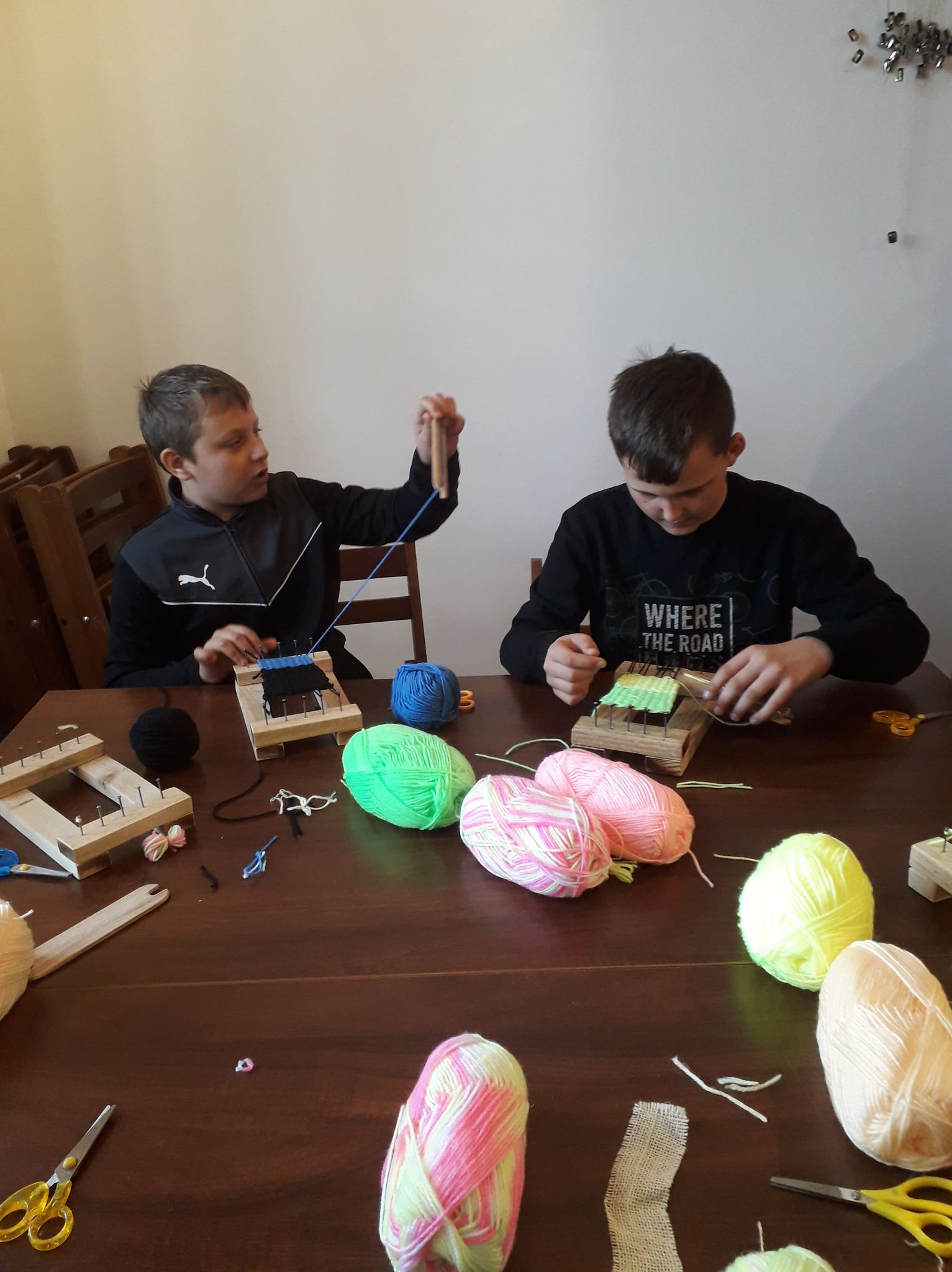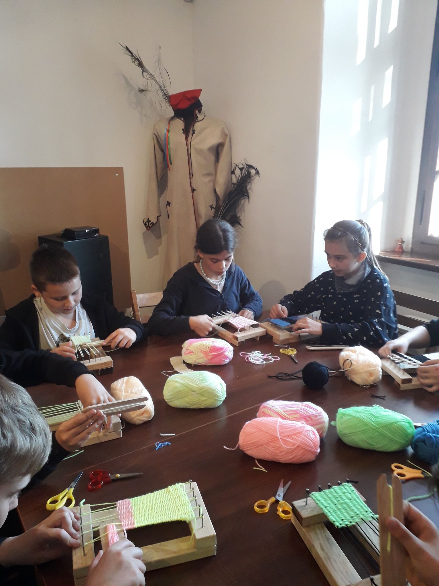 Proces ręcznego tkania wzbudził u uczniów duże zainteresowanie, z zapałem pracowali na mini krosnach, tkając kawałek tkaniny. Na koniec zajęć mieli okazję obejrzenia zachowanych tkanin naturalnych mających ok. 500 lat.