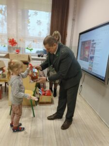 W tym roku również stanęli na wysokości zadania i przygotowali dla maluchów upominki z okazji mikołajek. Prezenty w imieniu Koła Łowieckiego wręczali: Roman Winiarski oraz Marek Florek. Dzieci były zachwycone wizytą myśliwych i podarkami.