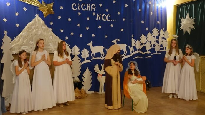 Uczniowie pięknie przedstawili Jasełka dla społeczności lokalnej, a następnie razem z zebranymi zaśpiewali znane kolędy.