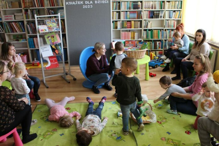 Podczas zajęć dzieci poznały rodzaje książek min. książki 3D, książki bez obrazków, picture booki, książkę z dziurą oraz książki ruchome. Usłyszały również historię wielkanocnego zajączka, który rozdał wszystkim zgromadzonym słodkie jajeczka. Tego dnia wszystkie dzieci odwiedzające bibliotekę miały możliwość „poczęstowania się książką” z bibliotecznego koszyka.