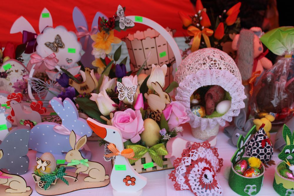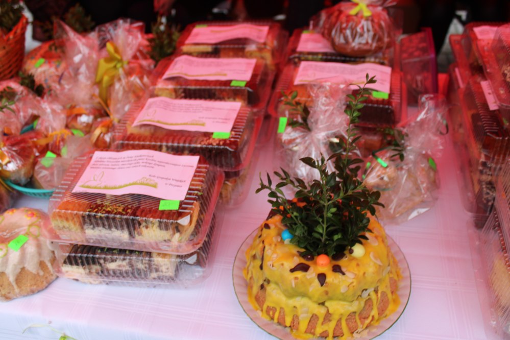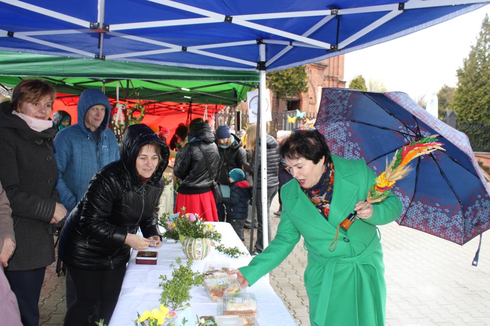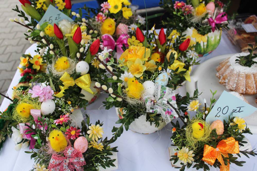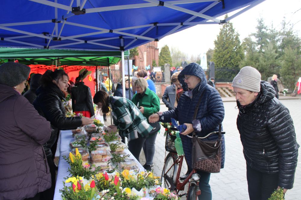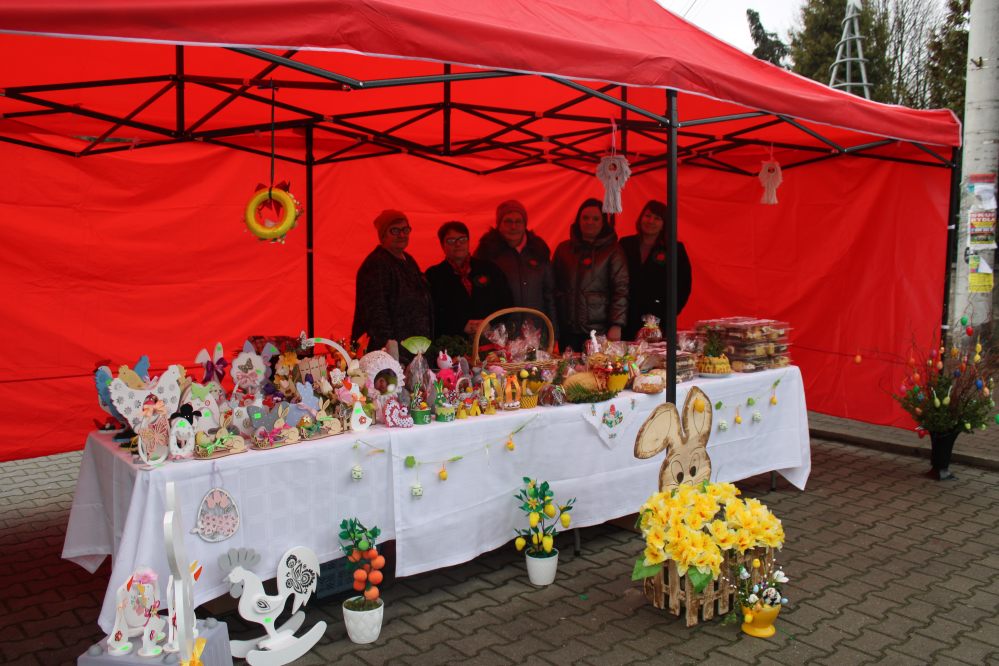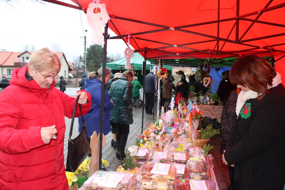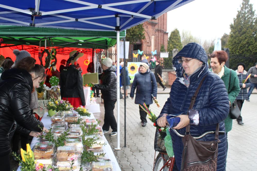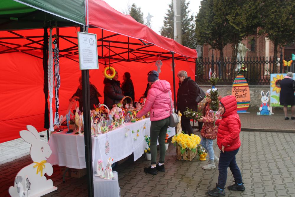 Kiermasz wielkanocny na placu przed kozłowską świątynią przepełniony był stoiskami z ciastami, ozdobami i stroikami świątecznymi przygotowały Koła Gospodyń Wiejskich z Kozłowa, Przysieki i gościnnie Pogwizdowa. Drewniano-ażurowe dekoracje z firmy Sky-Skraw od miejscowego przedsiębiorcy cieszyły się powodzeniem wśród uczestników kiermaszu.