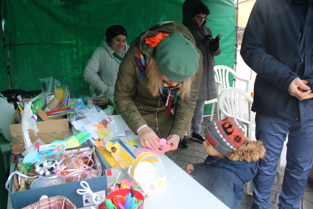 Na stoisku plastycznym najmłodsi mogli wykonać własnoręcznie słodkie zajączki i kwiatuszki. Oprawę muzyczną podczas uroczystej mszy świętej zapewnił młodzieżowy chór ze Studia Piosenki Pani Katarzyny Kornaś.