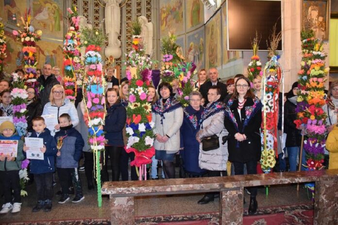 Mszę świętą odprawił ks. proboszcz Edward Kuzka. Po zakończeniu nabożeństwa wręczono nagrody dla laureatów konkursu na „Najstrojniejszą Palmę Wielkanocną 2023”.
