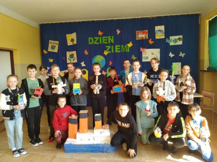 Do organizacji tego dnia dołączyła się również Edyta Ratuch z uczniami kl. IV-VI. Przygotowała ulotki o tematyce ekologicznej, plakaty oraz zabawki wykonane z odpadów.