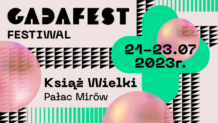 Festiwal Gadafest to trzy dni (21-23 lipca 2023 r.)przepełnione muzyką w zjawiskowej przestrzeni wokół Pałacu Mirów w Książu Wielkim. Jak co roku, na dwóch scenach będzie można usłyszeć nietuzinkowych artystów z różnych światów – od niszowych dobrze zapowiadających się, po znanych i nagradzanych w Polsce i za granicą. Podczas tegorocznej edycji wystąpią: 1988, Afro Kolektyw, Kapela Maliszów, Młyn, Dymny Sour, House Of Lucy, Bartosz Weber, Krenz, Hermeneia i wielu innych.