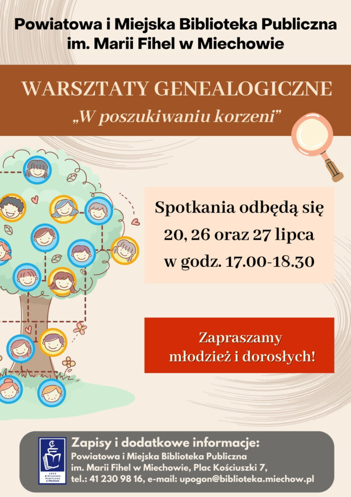 Jeśli nie znasz odpowiedzi na powyższe pytania lub nie jesteś ich pewien, ale masz zapał i chęci, żeby to zmienić, przyjdź do naszej biblioteki na warsztaty genealogiczne. Powiedz o nich swoim znajomym zainteresowanym tematyką, przyprowadź swoje wnuki. Zapraszamy młodzież i dorosłych zainteresowanych tematyką genealogiczną.