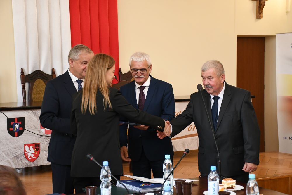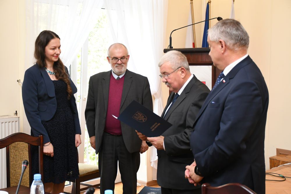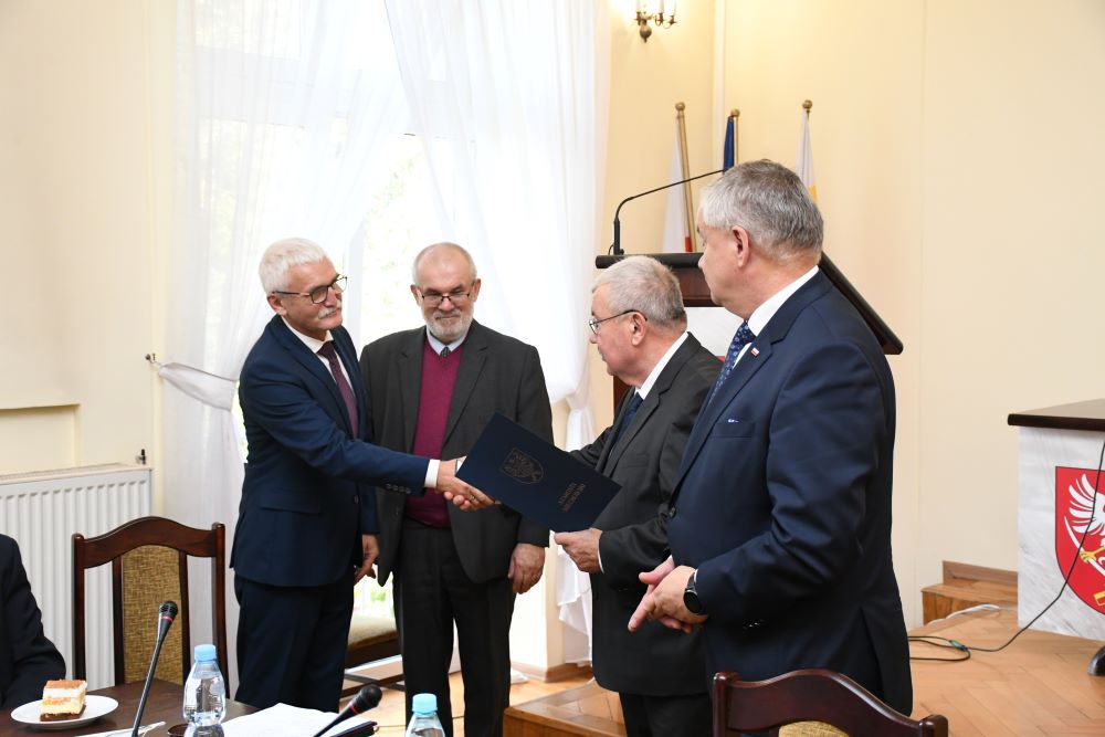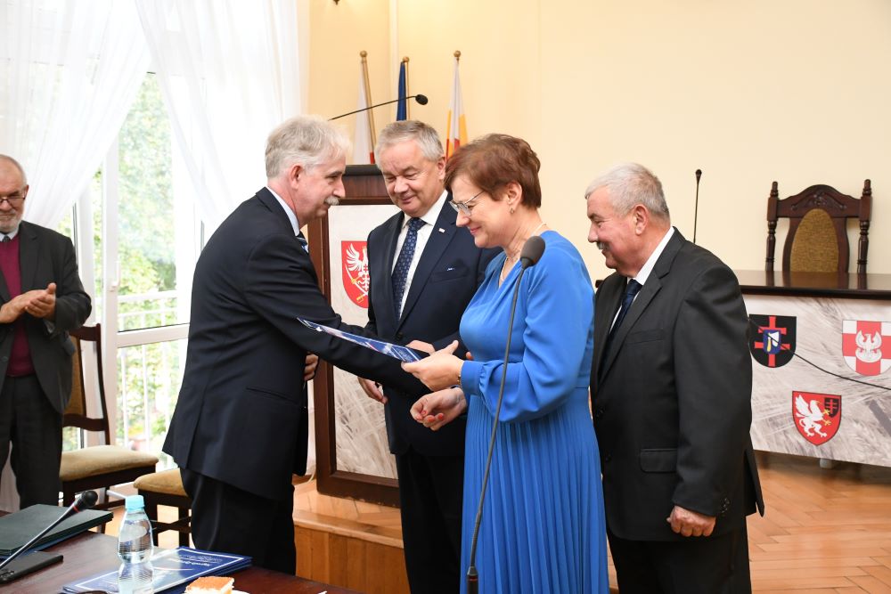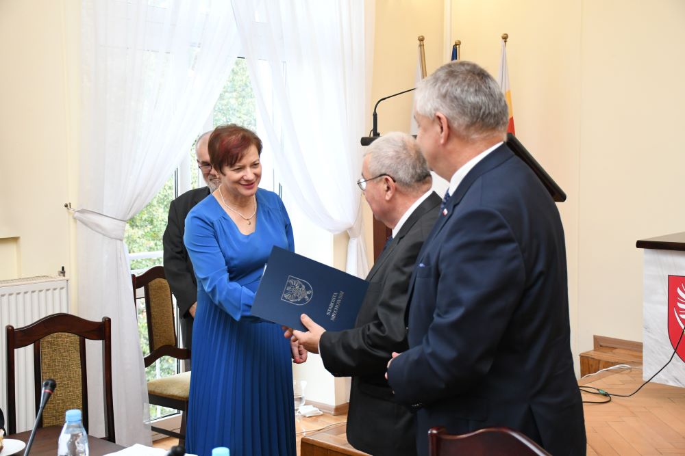 Starosta w asyście Piotra Grządziela z Zarządu Powiatu i Przewodniczącego Rady Powiatu Krzysztofa Świerczka wręczył nagrody dla 13 osób. Byli to: