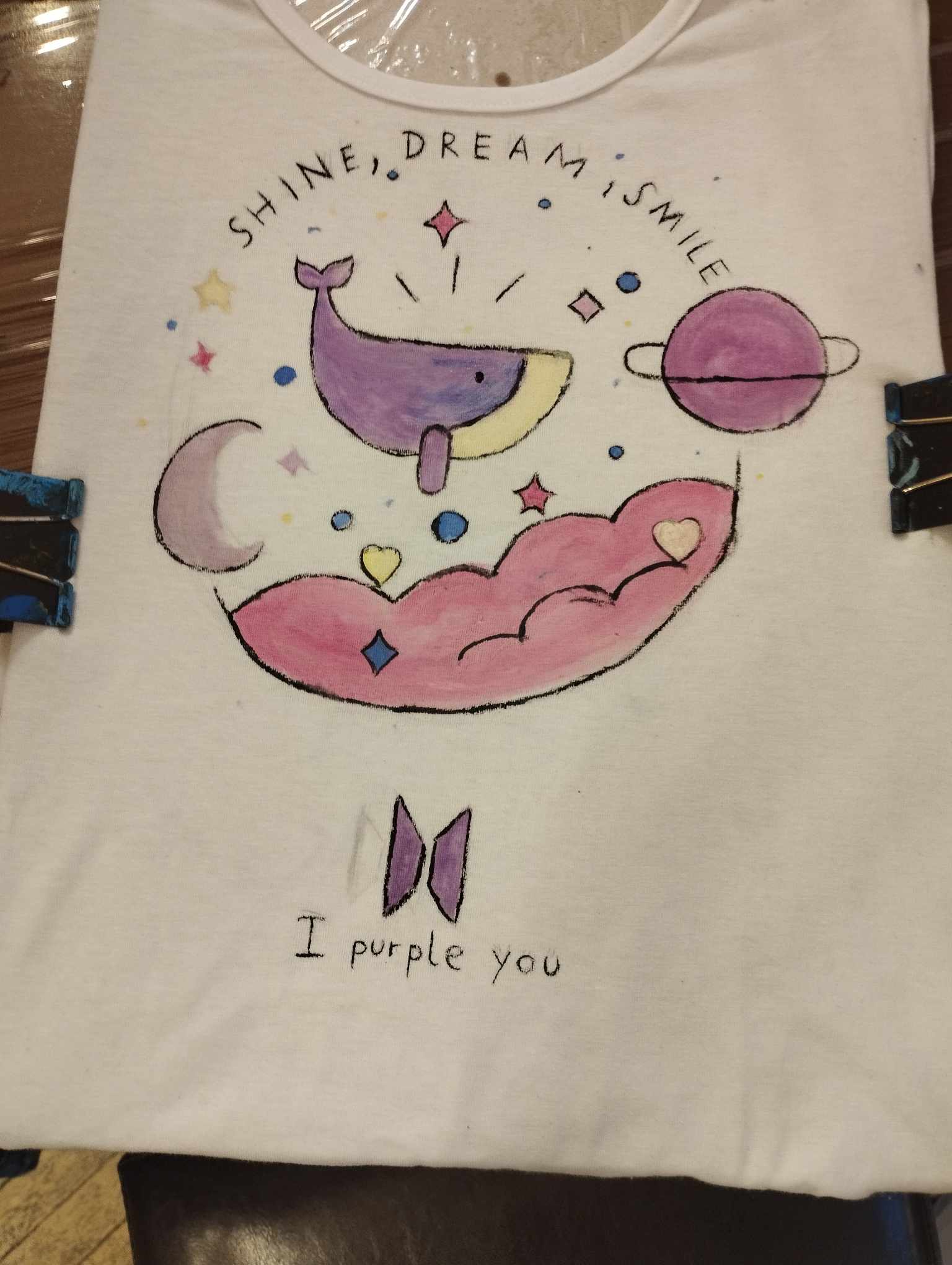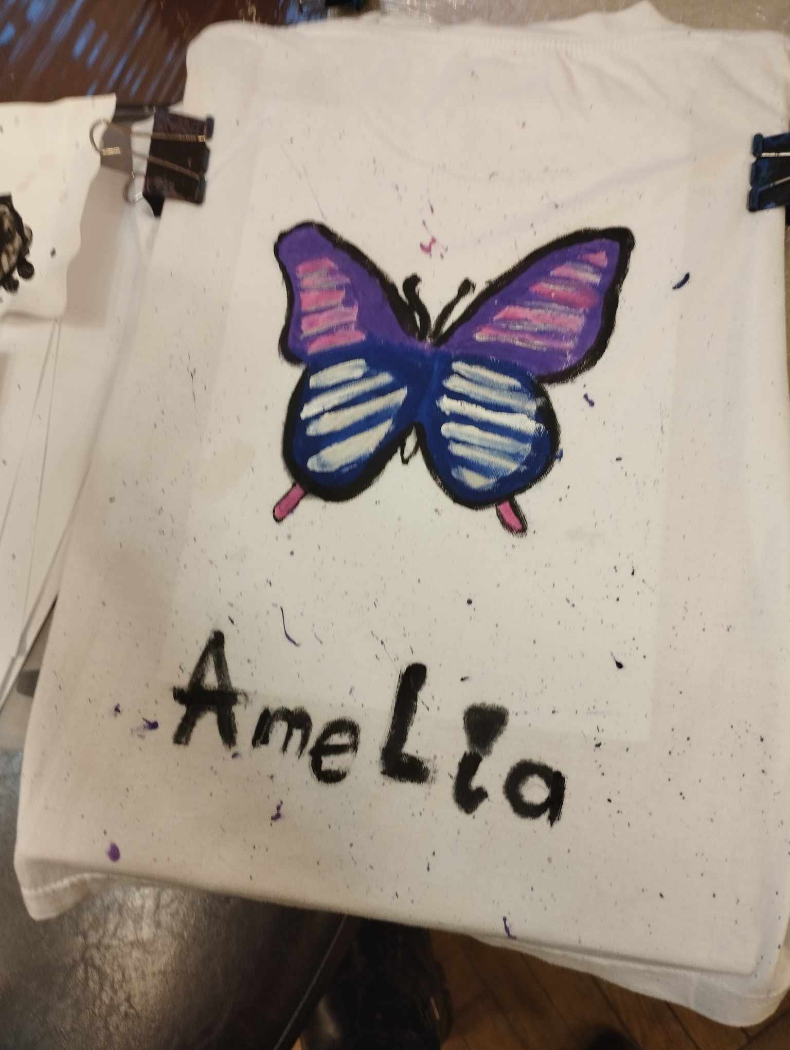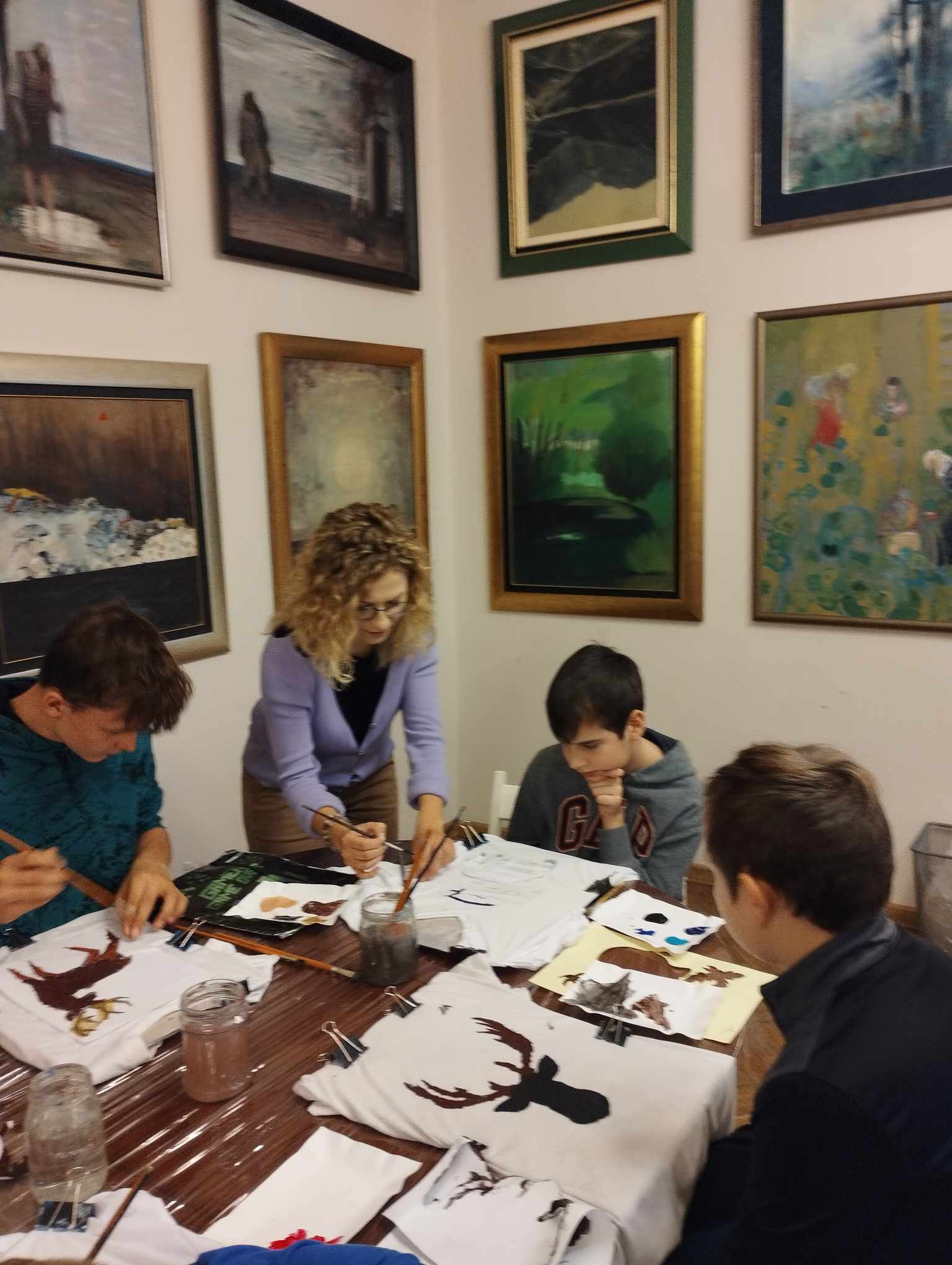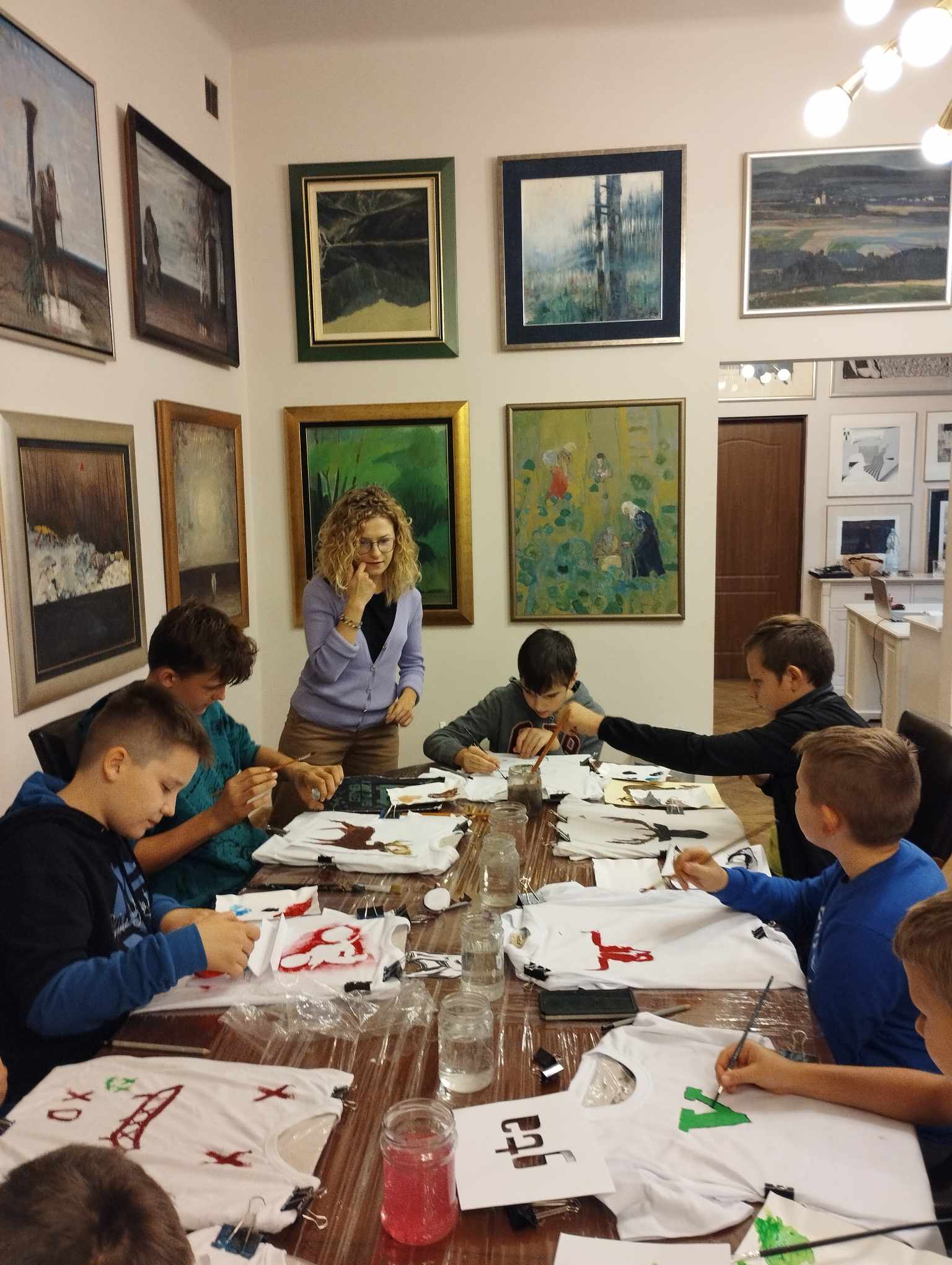Głównym celem warsztatów było namalowanie na koszulce według własnego pomysłu wzoru z wykorzystaniem szablonu i specjalnych farb do malowania tkanin. Uczniowie sami przygotowali swoje szablony i w zaskakującym tempie personalizowali swoje koszulki. Na jednych pojawiły się barwne konie, motyle, na innych samochody i inne wzory.