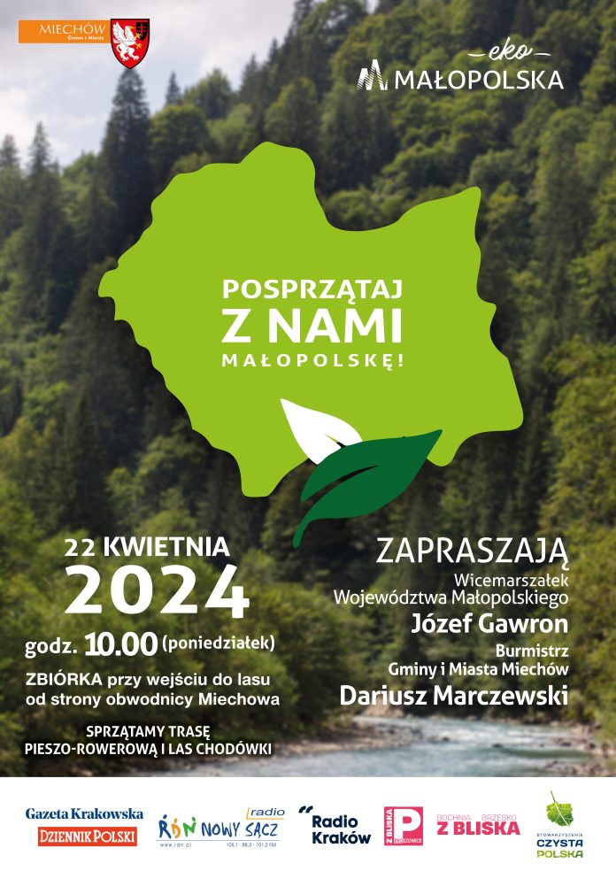 „Posprzątaj z nami Małopolskę” to inicjatywa, która łączy praktyczne działania na rzecz środowiska z edukacją przyrodniczą i ekologiczną. Dlatego nieprzypadkowo zakończenie akcji odbędzie się w Gminie Miechów, noszącej zaszczytny tytuł „Lidera ekologii” oraz laureata w plebiscycie „Eko HERO 2021” organizowanym przez Urząd Marszałkowski Województwa Małopolskiego. Mieszkańcy, przy wsparciu samorządu, od lat angażują się w projekty prośrodowiskowe, m.in. w ramach współpracy z Nadleśnictwem Miechów biorą udział w wiosennej akcji sadzenia drzew #sadziMY. Gmina Miechów realizuje również wiele przedsięwzięć, które przedkładają się w bezpośredni sposób na poprawę jakości powietrza.