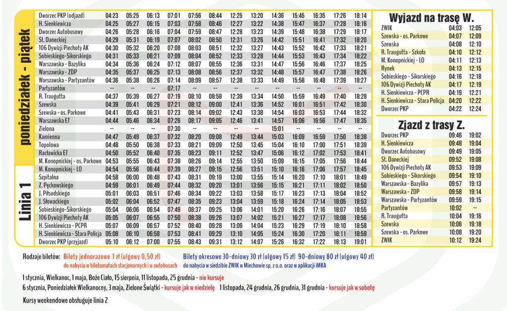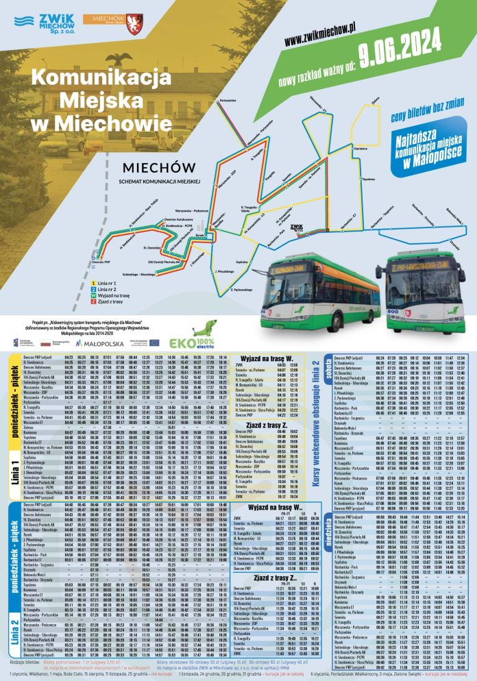 Informujemy, że od najbliższej niedzieli – 9 czerwca br. wprowadzone zostają zmiany w rozkładach jazdy komunikacji miejskiej w Miechowie.