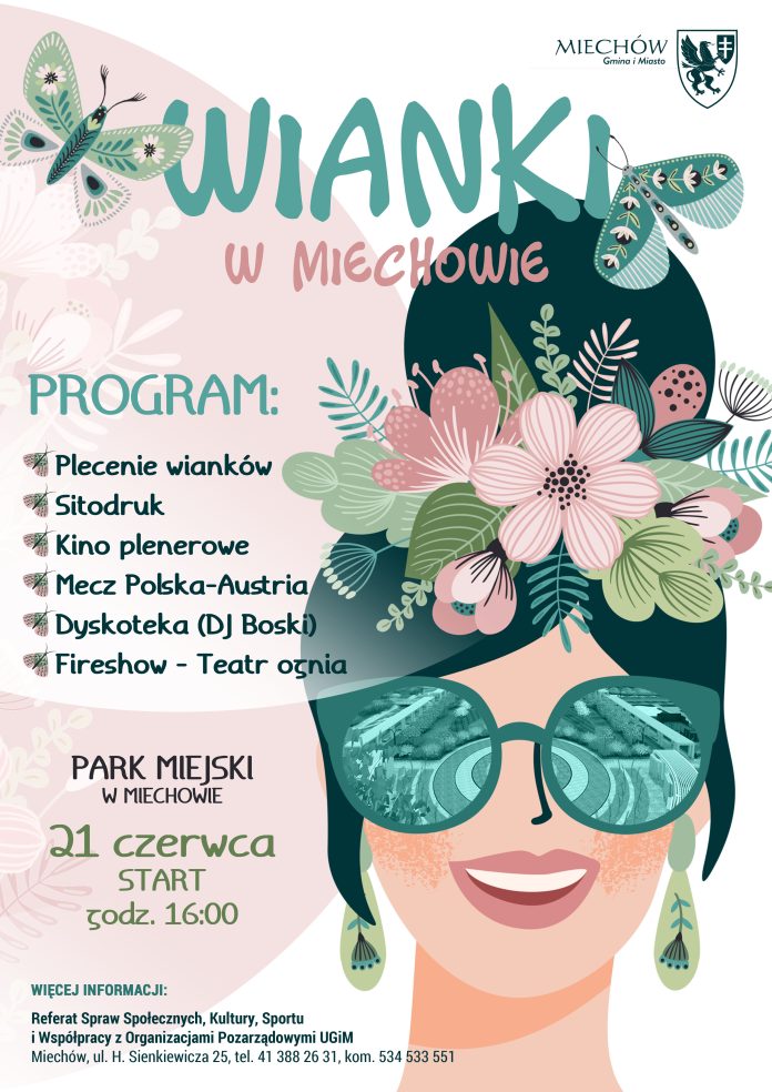 Wianki – to miechowski sposób na radosne powitanie lata. 21 czerwca od godziny 16.00 po raz kolejny odbędą się Wianki w Parku Miejskim w Miechowie. W programie między innymi:
