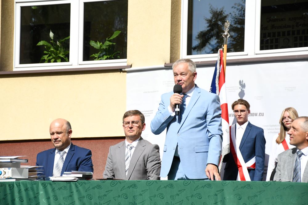 Starosta Miechowski Krzysztof Świerczek uczestniczył w apelu zamykającym kolejny okres edukacji w Liceum Ogólnokształcącym im. Tadeusza Kościuszki oraz w Zespole Szkół Nr 2 im. Jana Pawła II w Miechowie. Wraz z dyrektorami – Krzysztofem Gajosem (LO) i Jerzym Schabem (ZS Nr 2) wyróżnił młodzież, która osiągnęła najlepsze wyniki w nauce, sporcie, frekwencji. Starosta gratulował najlepszym i dziękował dyrekcji oraz pedagogom za ich nieoceniony wkład krzewienie wiedzy oraz wychowanie uczniów. W Zespole Szkół Nr 2 wspierali go w tym – Piotr Grządziel z Zarządu Powiatu oraz Jan Biesaga, Przewodniczący Rady Powiatu Miechowskiego. Oni też wraz z Wicestarostą Jerzym Pułką reprezentowali powiatowy samorząd na zakończeniu roku w Zespole Szkół Nr 1. W uroczystym apelu wieńczącym rok szkolny w Specjalnym Ośrodku Szkolno-Wychowawczym w Zagorzycach uczestniczył członek Zarządu Powiatu – Patryk Natkaniec.