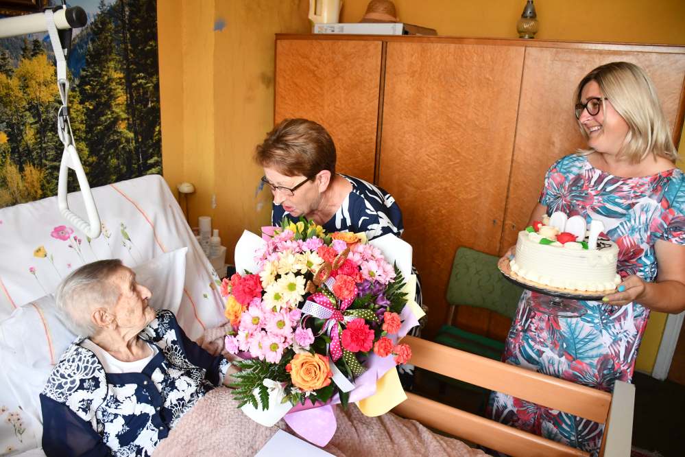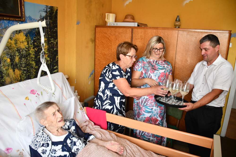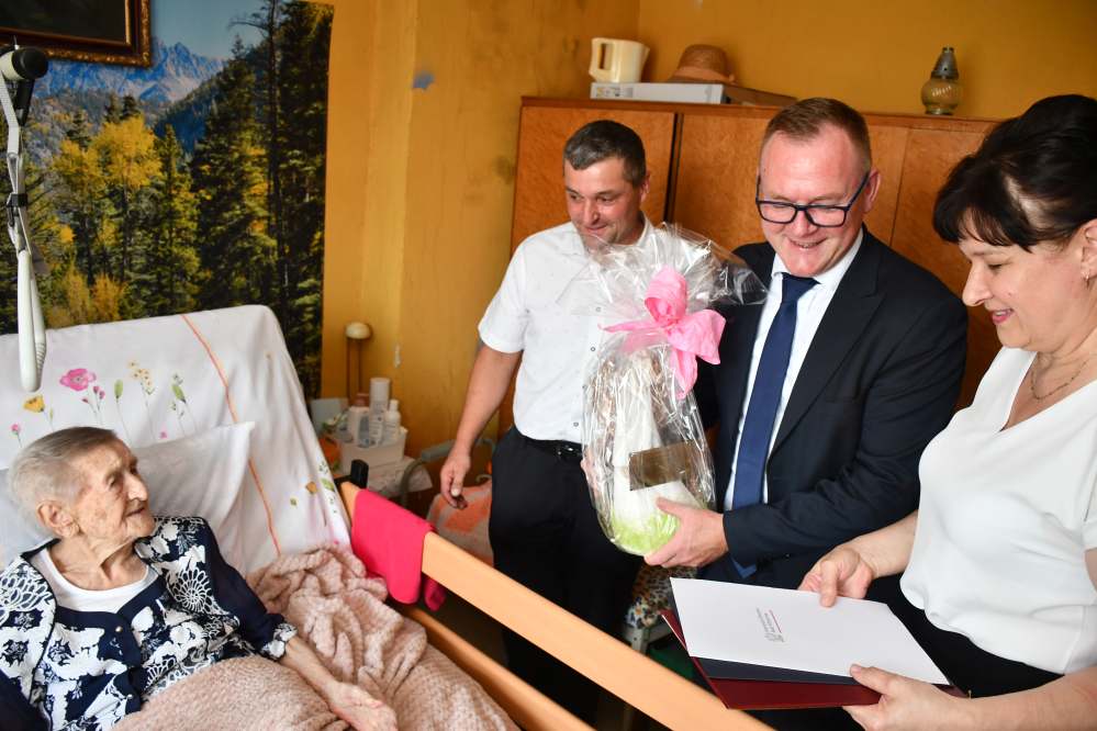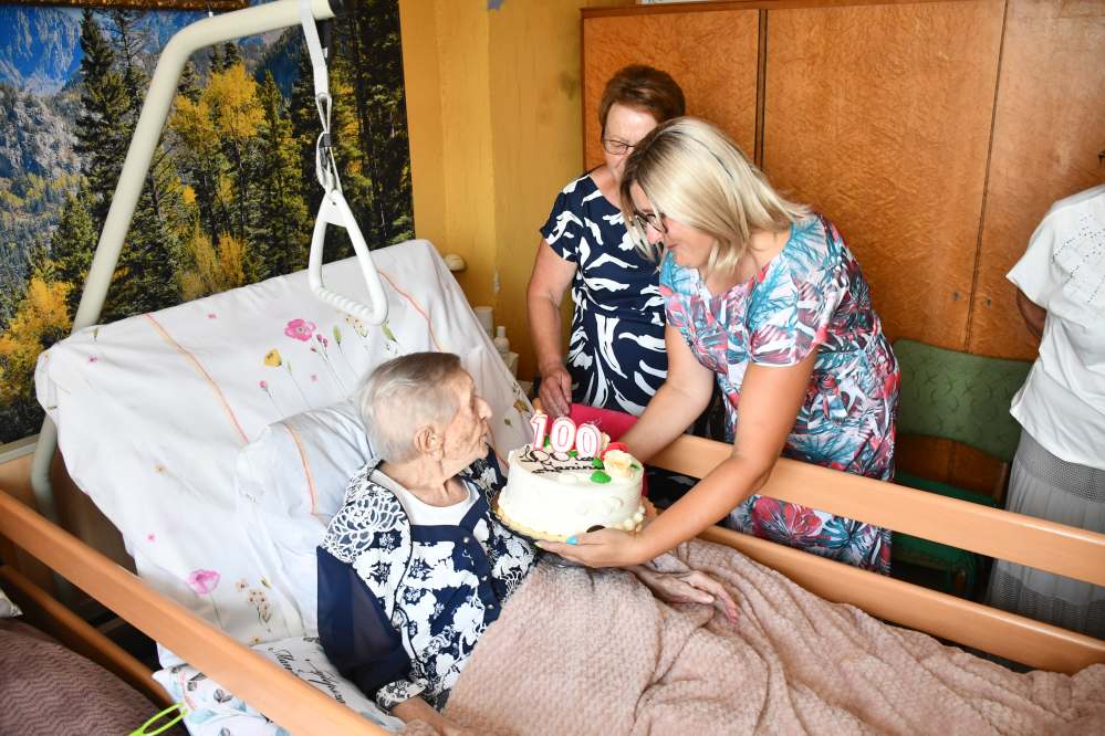 „Sto lat to za mało…” Te słowa popularnej przyśpiewki urodzinowej są jak najbardziej adekwatne dla Pani Janiny Wójcik, mieszkanki Słupowa w Gminie Słaboszów, która dokładnie 16 lipca 2024 skończyła 100 lat. Z tej okazji otrzymała gratulacje i moc życzeń od włodarzy lokalnego samorządu na czele z wójtem Łukaszem Delą i Przewodniczącym Rady Gminy – Rafałem Madejowskim, radną i sołtys ze Słupowa, kierownik USC – Marią Skóra oraz przedstawicielkami KRUS-u.