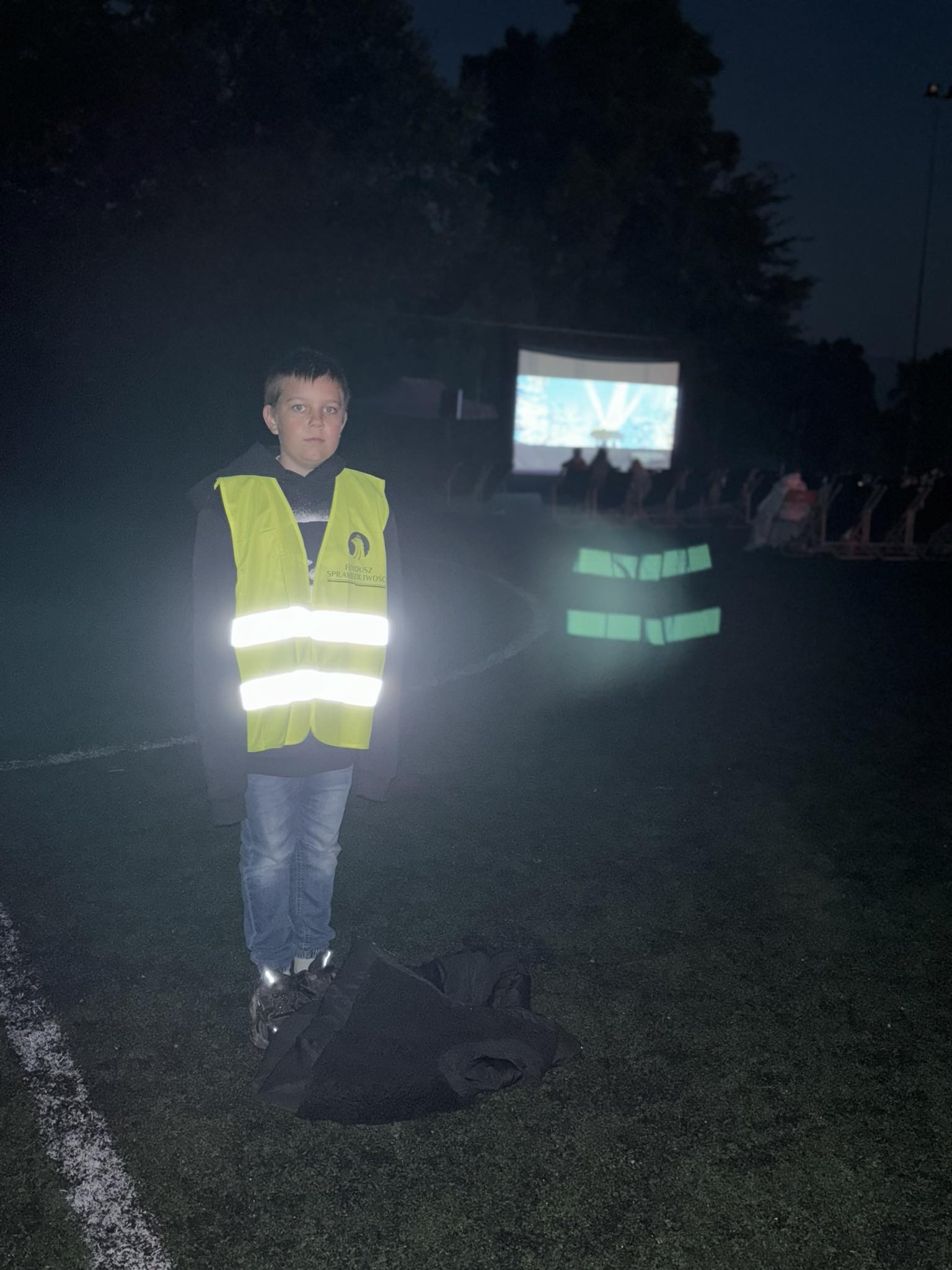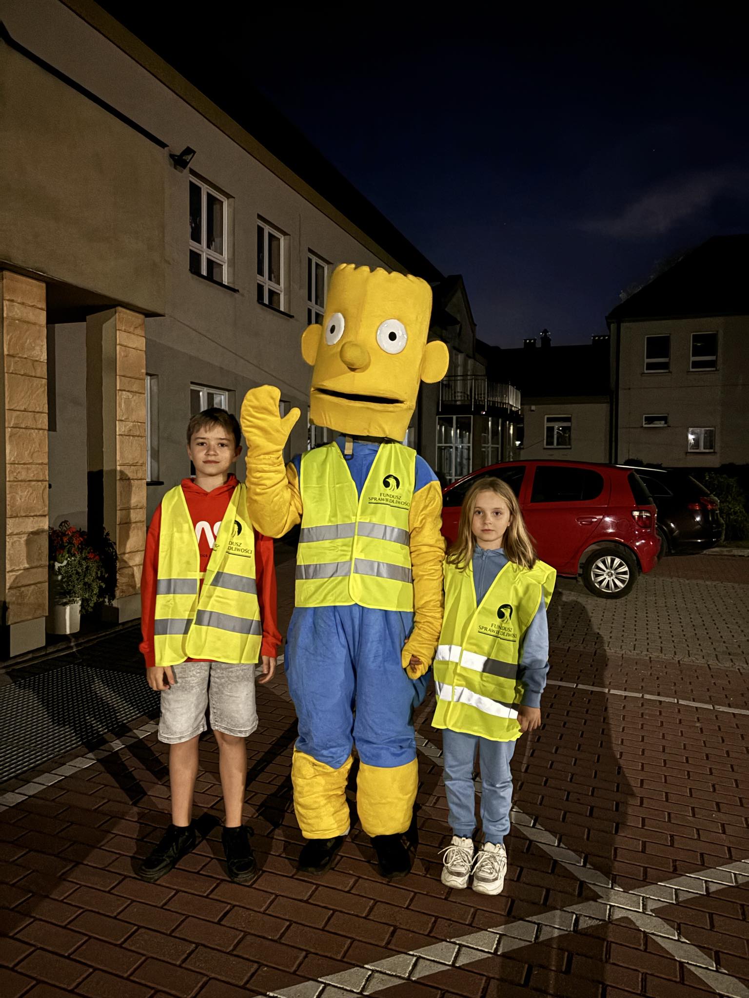 Dzieci doświadczyły co daje odblask, szukając maskotki w kamizelce odblaskowej wieczorową porą. Pan Maskotka podczas imprezy rozdawał uczestnikom kamizelki odblaskowe, które zapewniły im bezpieczny powrót do domu późnym wieczorem po zakończonej imprezie.