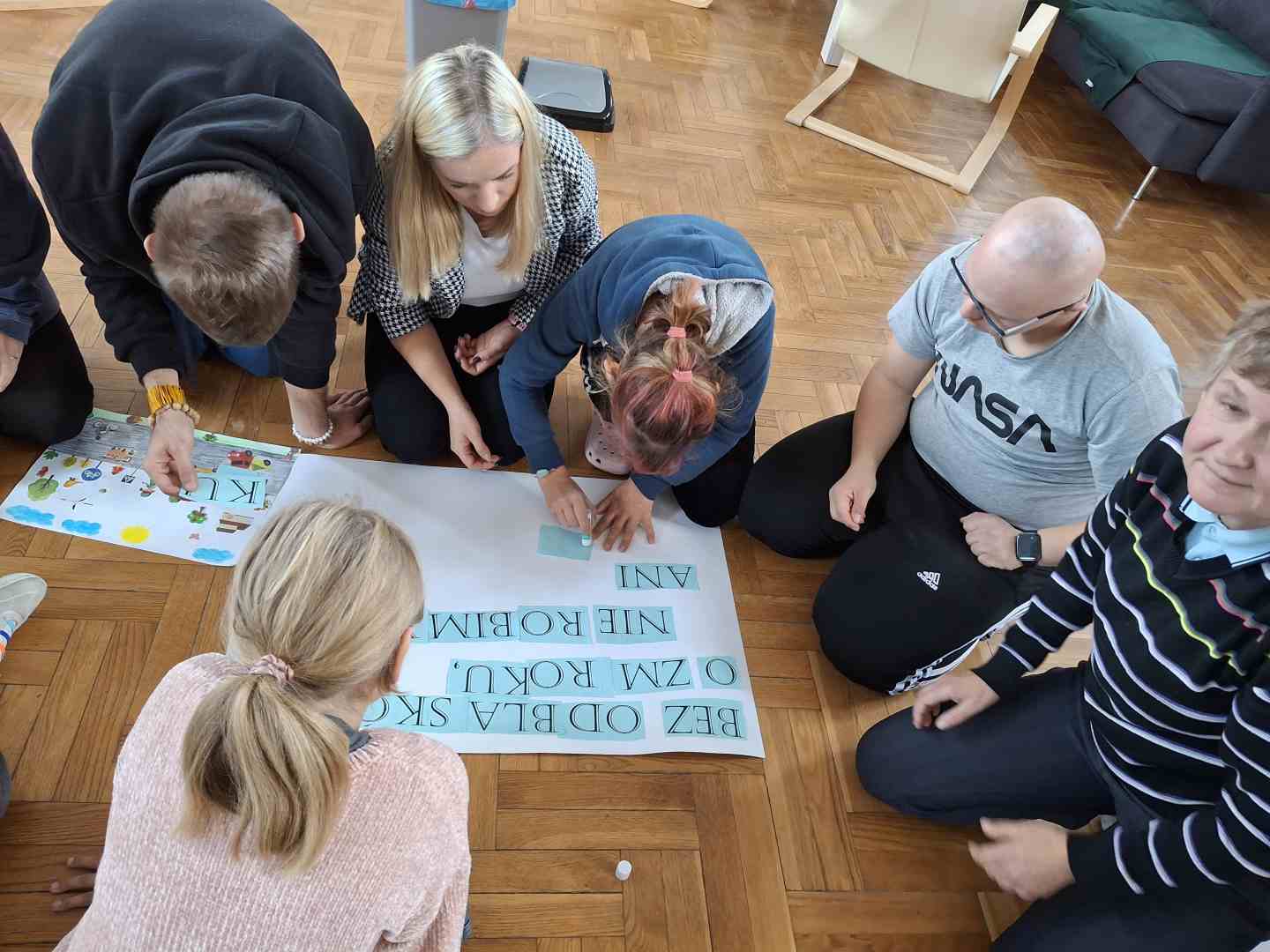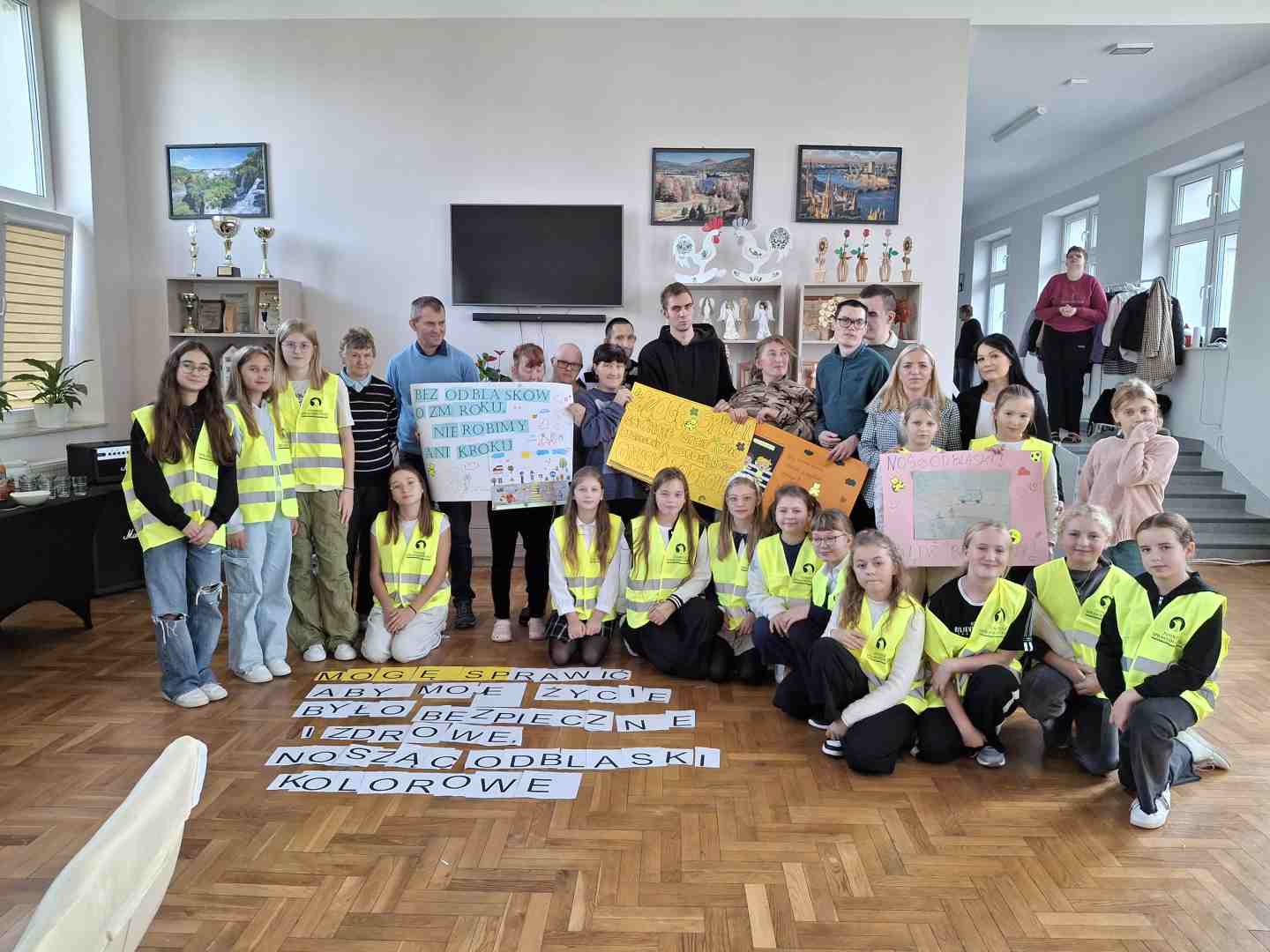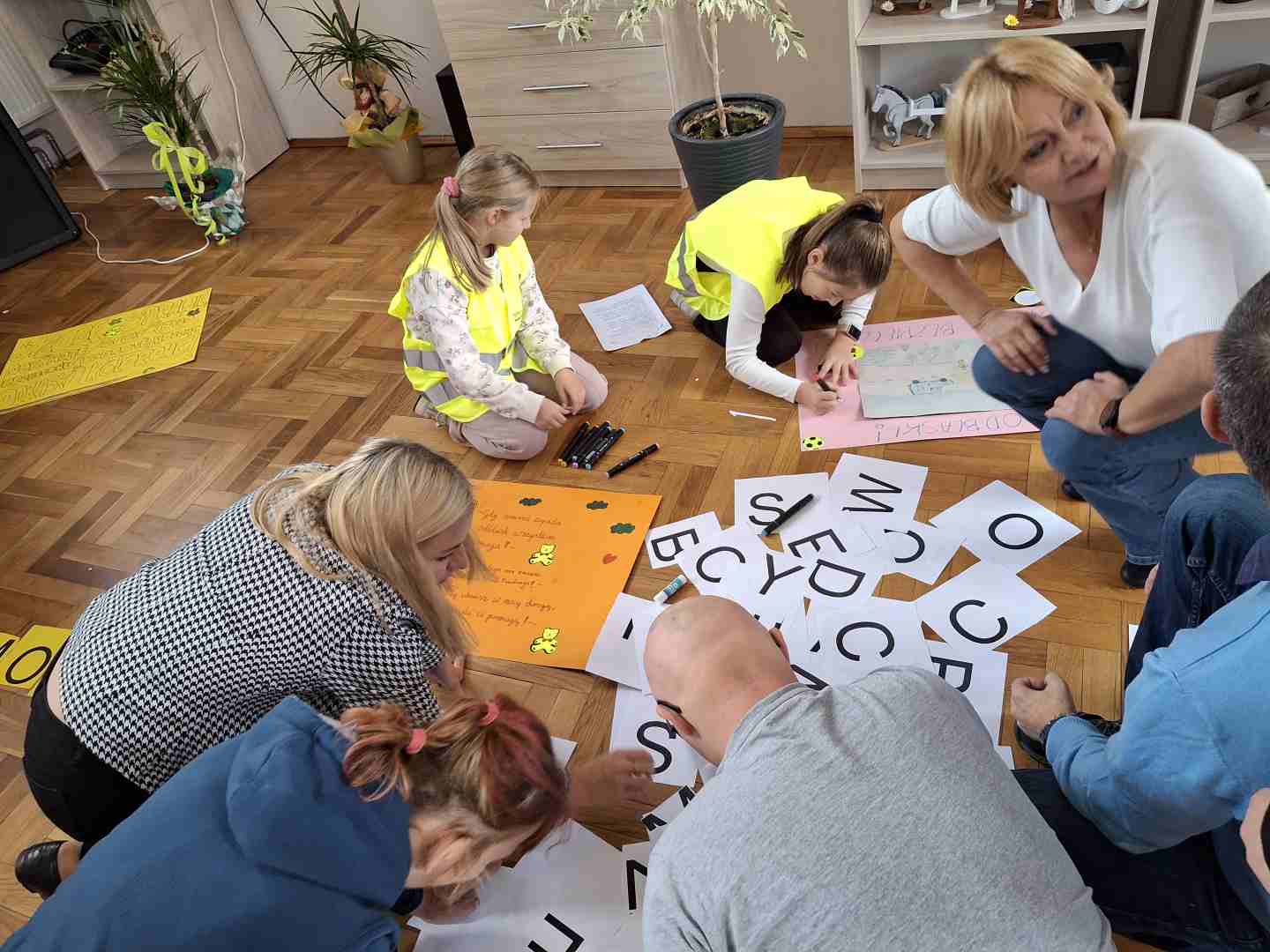Po pouczającej prelekcji oraz wyśpiewaniu odblaskowych piosenek uczniowie oraz uczestnicy warsztatów wykazali się dużą pomysłowością w tworzeniu plakatów. Wspólne prace trafnie zwracały uwagę na prawidłowe zachowanie na jezdni, a przede wszystkim nakłaniały do noszenia elementów odblaskowych. Spędzili wspólnie czas układając oraz głośno powtarzając pouczające hasła.