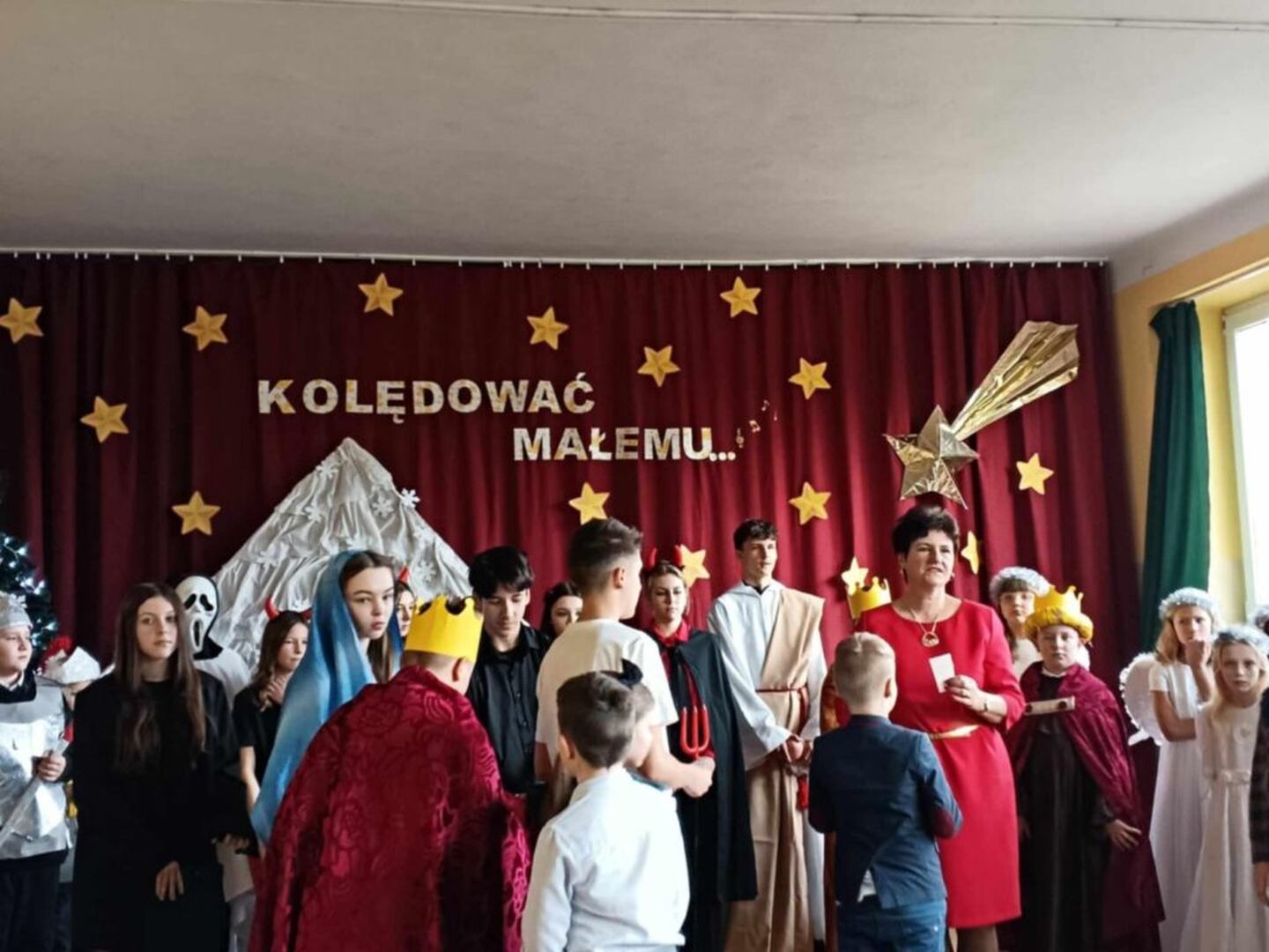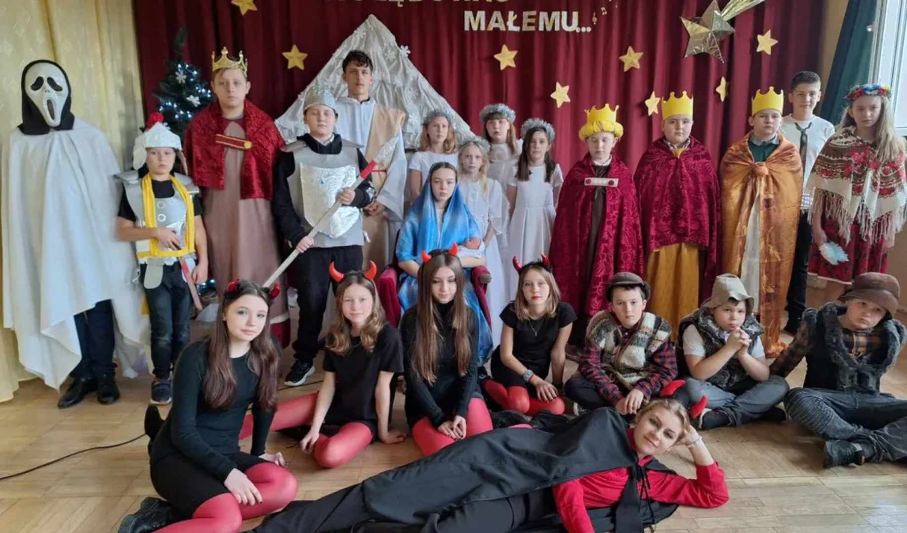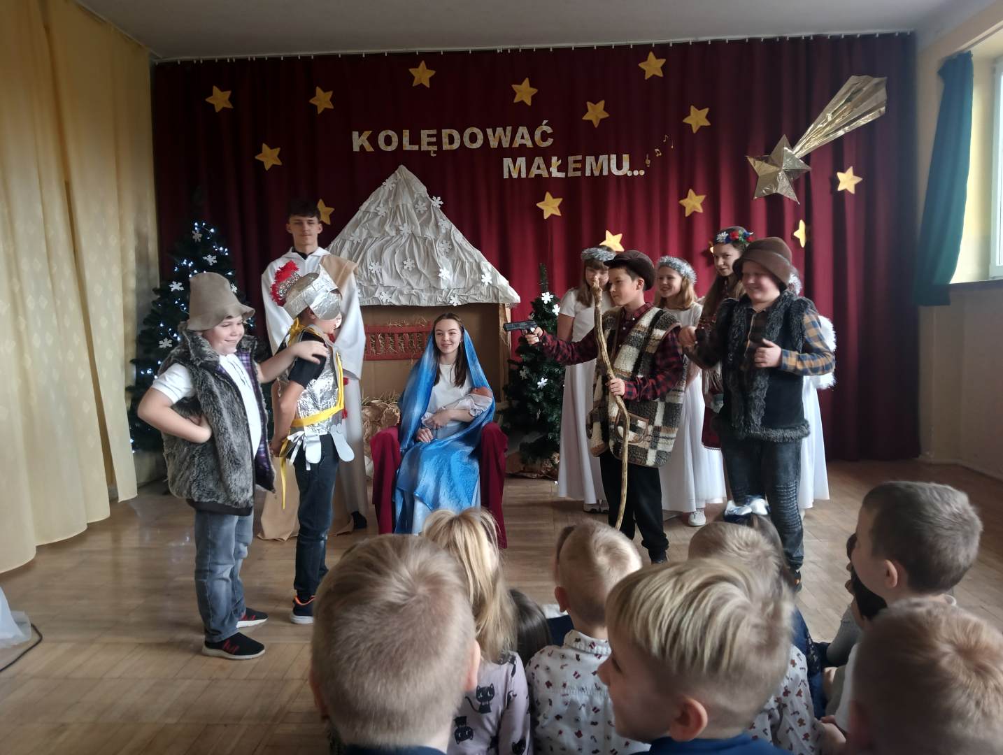Uczniowie ze Szkoły Podstawowej w Książu Małym pod kierunkiem wychowawczyń: Moniki Wojtyry i Bożeny Janus przygotowali jasełka bożonarodzeniowe.