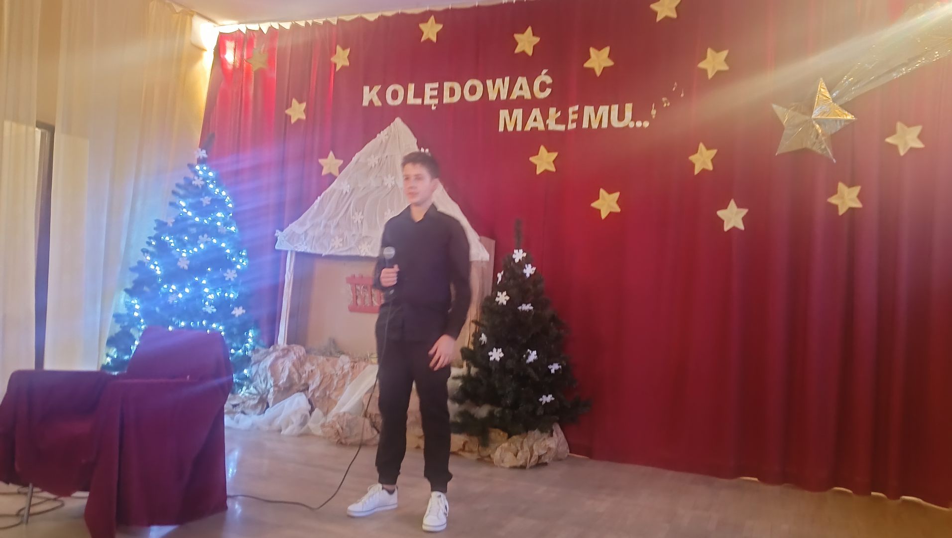 Pierwszy raz podczas szkolnej wigilii przed władzami Miasta i Gminy Książ Wielki oraz społecznością szkolną.