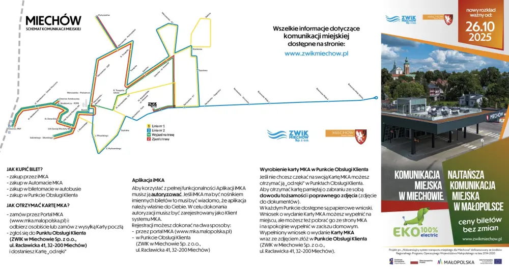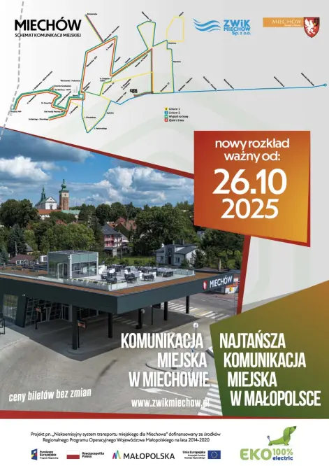 Od najbliższej niedzieli 26 października 2025 roku wprowadzone zostają zmiany w komunikacji miejskiej w Miechowie. Trasy kursów autobusów elektrycznych dostosowano do zmienionego rozkładu SKA.