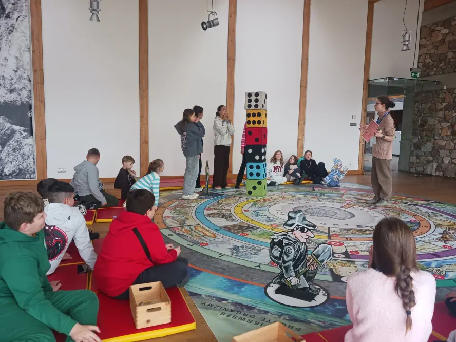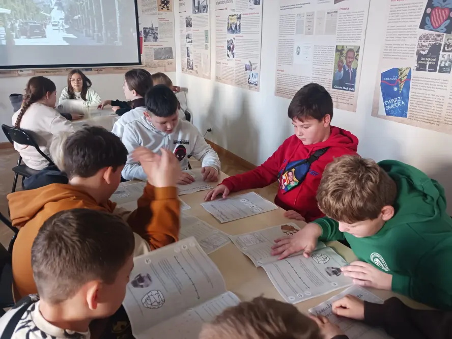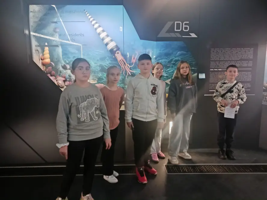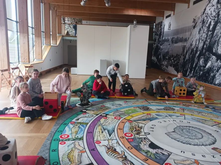Z kolei w Nowoczesnym Centrum z interaktywnymi wystawami poświęconymi geologii (Geopark Kielce) zwiedzili wystawę CHRONOS, obejrzeli film w kinie (Kapsule Czasu), uczestniczyli w grze terenowej, a następnie warsztatach.